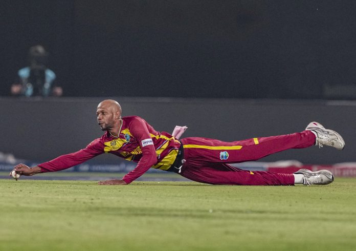 Kolkata: West Indies' Roston Chase during the ICC Men's T20 World Cup 2026 cricket match between India and West Indies, at the Eden Gardens, in Kolkata, West Bengal, Sunday, March 1, 2026. (PTI Photo/Manvender Vashist Lav) (PTI03_01_2026_000974B)