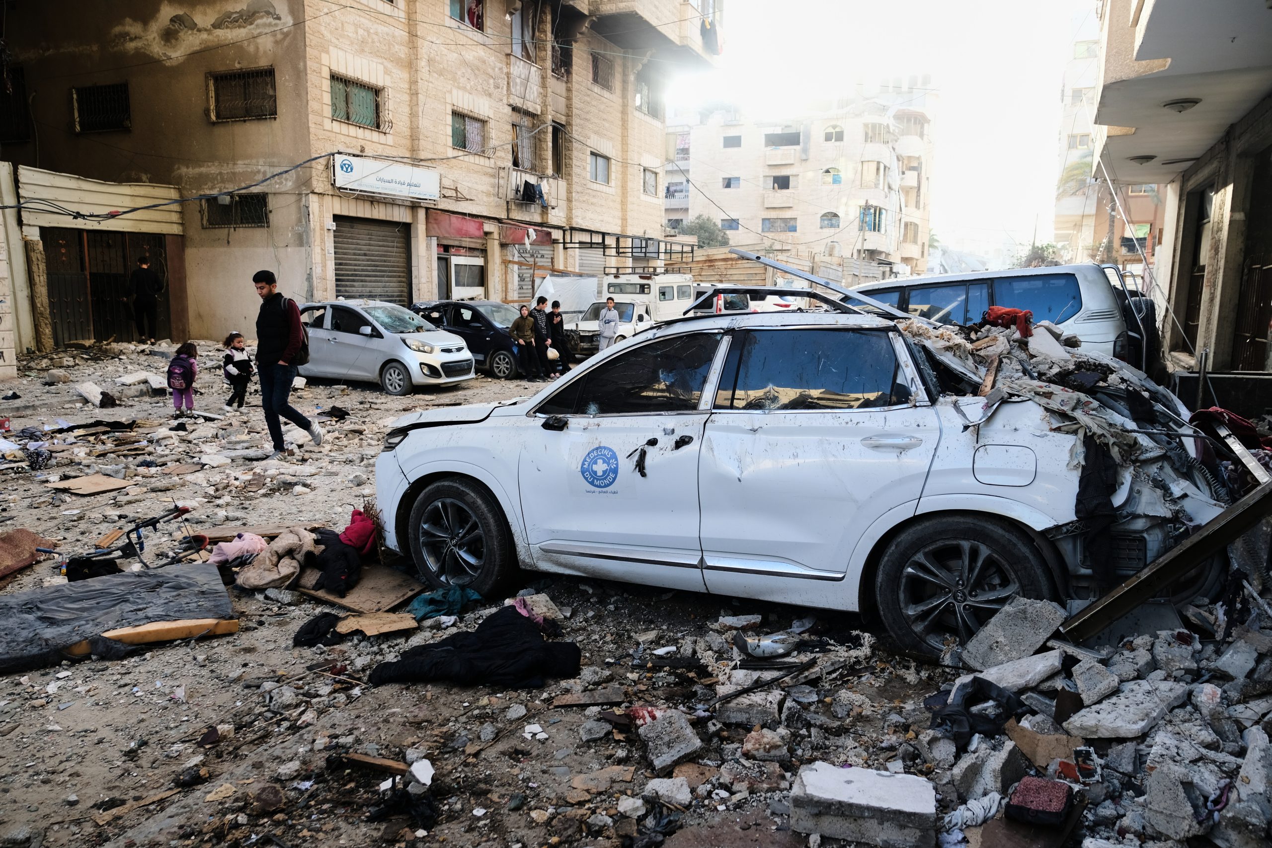 दो छोटे बच्चों को अपने पिता के शव के पास घुटनों के बल बैठे देखा गया, जबकि एक महिला उन्हें विदा लेने को कह रही थी। एक छोटी बच्ची ने अपने पिता के गाल चूमे।
