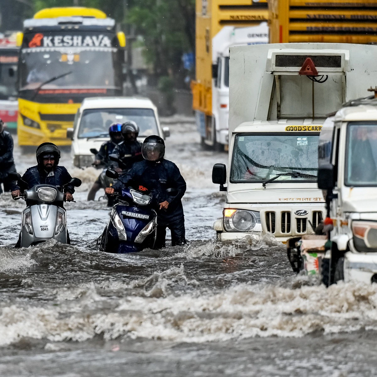 मुंबई में भारी बारिश: 28 मई को IMD ने मुंबई और कोंकण क्षेत्र के लिए रेड अलर्ट जारी किया, जिससे जलभराव, यातायात में देरी और अचानक बाढ़ आई।