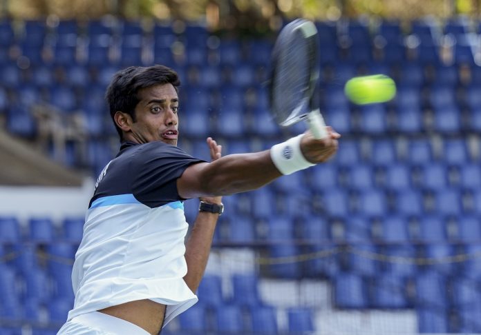 Bengaluru: India’s Karan Singh during a practice session ahead of the Davis Cup Qualifier round one tie tennis matches between India and Netherlands, at the SM Krishna Tennis Stadium, in Bengaluru, Karnataka, Friday, Feb. 6, 2026. (PTI Photo/Shailendra Bhojak) (PTI02_06_2026_000241B)