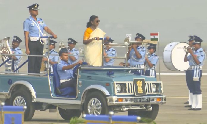 अंबाला, 29 अक्टूबर (PTI) राष्ट्रपति द्रौपदी मुर्मू बुधवार सुबह हरियाणा के अंबाला स्थित एयर फोर्स स्टेशन पहुंचीं, जहाँ वे राफेल लड़ाकू विमान में सॉर्टी भरेंगी।