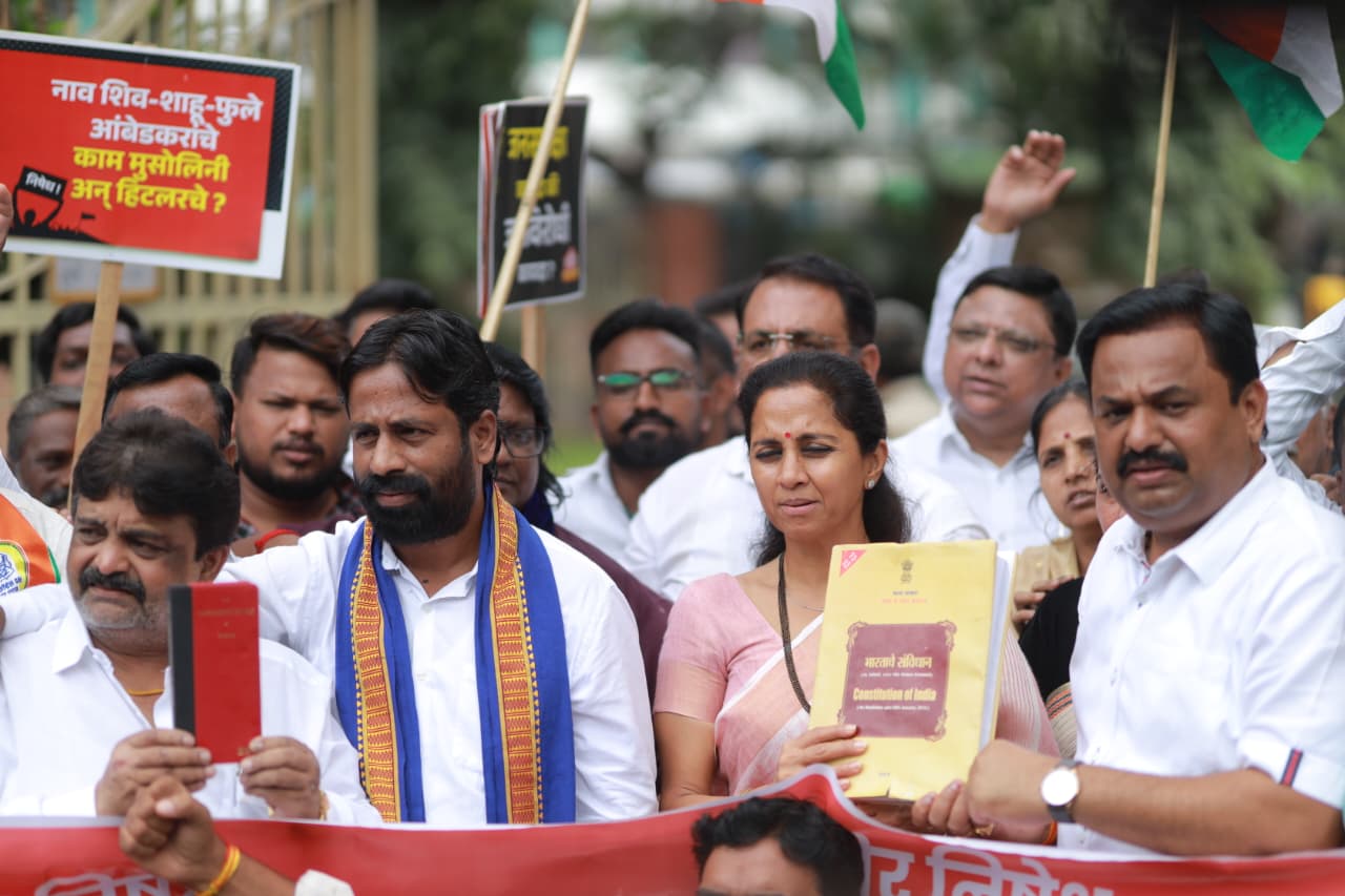 पुणे शहरात, एनसीपी (एसपी) कार्यकारी अध्यक्ष व खासदार सुप्रिया सुळे यांच्या नेतृत्वाखाली, पुणे रेल्वे स्टेशनजवळ डॉ. बी. आर. आंबेडकर स्मारकावर लोकांनी संविधानाचे कौतुक करत घोषणाबाजी केली. त्यांनी सरकारच्या “तानाशाही प्रवृत्ती”चा निषेध केला.