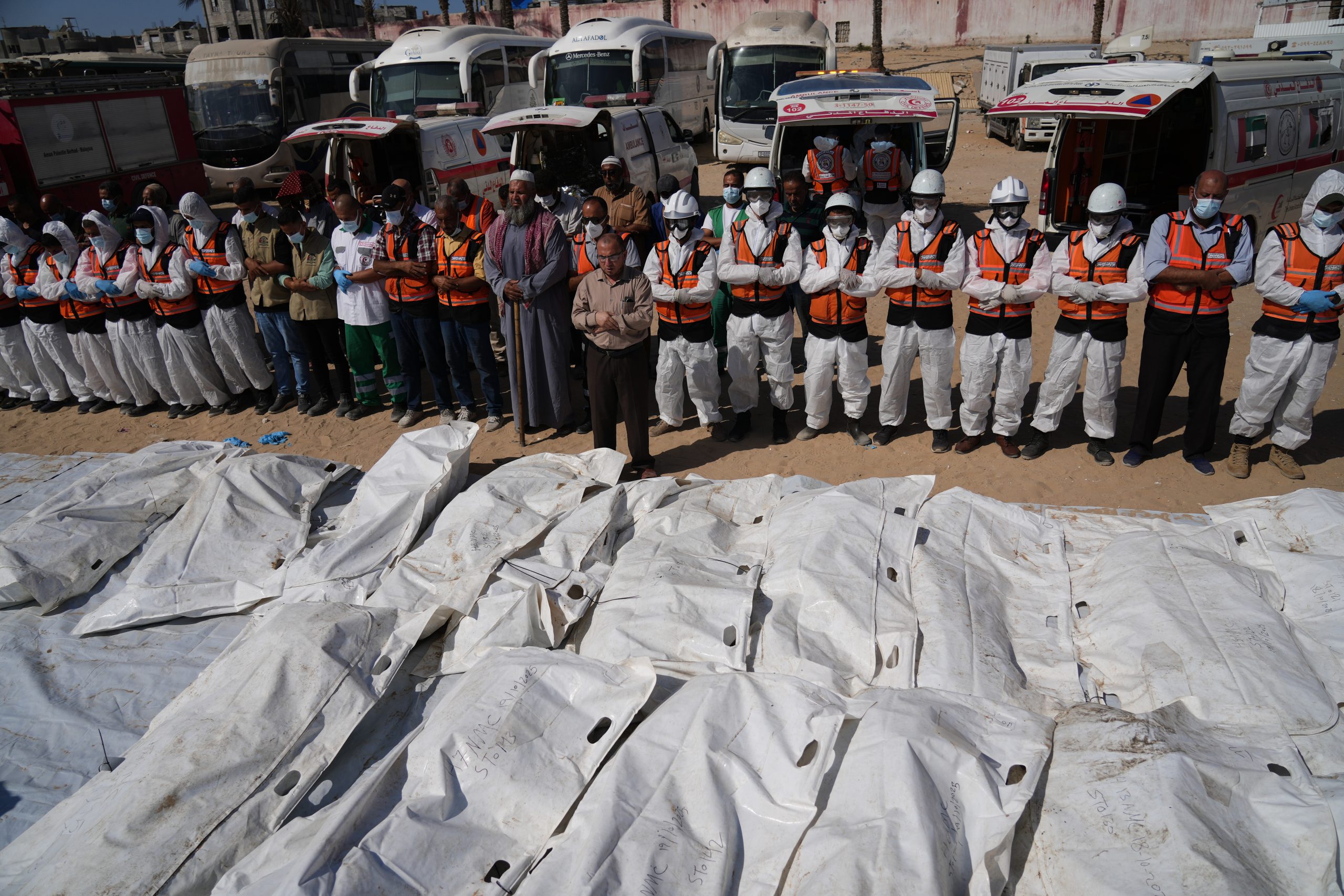 दक्षिणी शहर खान यूनिस के नासेर अस्पताल के एक डॉक्टर ने पुष्टि की कि अस्पताल को ये शव मिले हैं और सभी की पहचान नहीं की जा सकी है। रेड क्रॉस ने कहा कि उसके दलों ने शवों के हस्तांतरण में सहायता की।