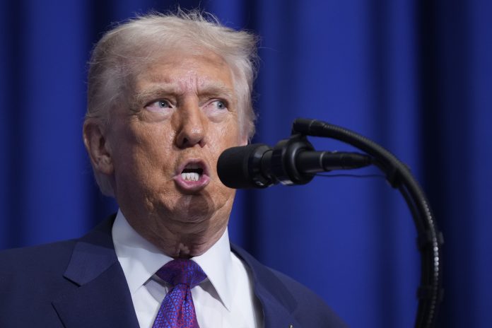President Donald Trump speaks during a Board of Peace meeting at the U.S. Institute of Peace, Thursday, Feb. 19, 2026, in Washington.AP/PTI(AP02_19_2026_000663B)
