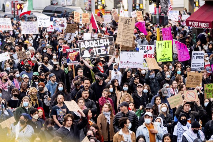 फिलाडेल्फिया, 15 जून (एपी) राष्ट्रपति डोनाल्ड ट्रंप के विरोध में शनिवार को अमेरिका भर में सड़कों, पार्कों और चौकों पर प्रदर्शनकारियों की भीड़ उमड़ पड़ी। वे शहर के बीचों-बीच और छोटे शहरों से मार्च करते हुए सत्ता-विरोधी नारे लगाते हुए लोकतंत्र और अप्रवासी अधिकारों की रक्षा के लिए समर्थन के साथ निकले। “नो किंग्स” प्रदर्शनों के आयोजकों ने कहा कि सैकड़ों कार्यक्रमों में लाखों लोगों ने मार्च किया। अमेरिका भर के राज्यपालों ने शांति की अपील की और हिंसा को बर्दाश्त न करने की कसम खाई, जबकि कुछ ने मार्च करने वालों के इकट्ठा होने से पहले नेशनल गार्ड को जुटा लिया। टकराव अलग-अलग थे। लेकिन लॉस एंजिल्स में पुलिस, जहां एक सप्ताह पहले संघीय आव्रजन प्रवर्तन छापों पर विरोध प्रदर्शन शुरू हुआ और पूरे देश में प्रदर्शन भड़क गए, ने औपचारिक कार्यक्रम समाप्त होने के बाद प्रदर्शनकारियों को हटाने के लिए आंसू गैस और भीड़-नियंत्रण हथियारों का इस्तेमाल किया। न्यूयॉर्क, डेनवर, शिकागो, ऑस्टिन और लॉस एंजिल्स में विशाल, उत्साही भीड़ ने कंधे से कंधा मिलाकर मार्च किया, नृत्य किया, ढोल बजाया और नारे लगाए, कुछ लोग “नो किंग्स” बैनर के पीछे थे। अटलांटा का 5,000 लोगों की क्षमता वाला कार्यक्रम जल्दी ही अपनी सीमा पर पहुँच गया, जब राज्य कैपिटल के सामने वक्ताओं को सुनने के लिए हज़ारों लोग बैरियर के बाहर एकत्र हुए।