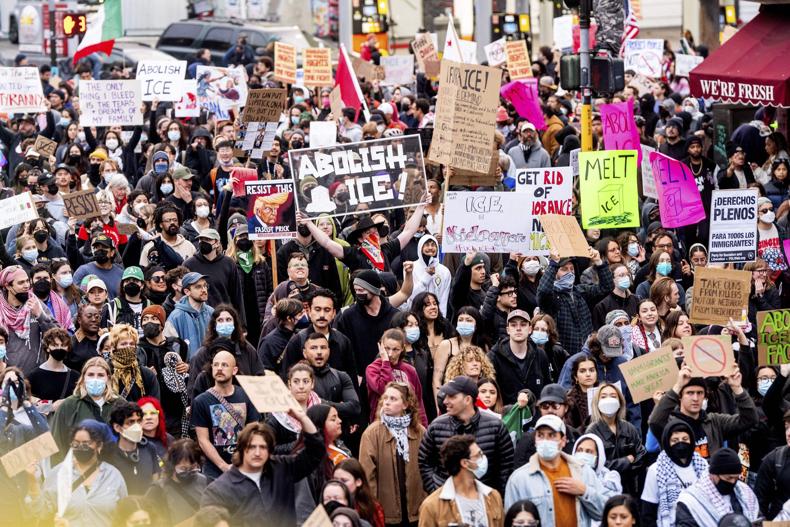 “मैंने डोनाल्ड ट्रम्प को वोट दिया, और अब मुझे इसका पछतावा है, क्योंकि उन्होंने इस फासीवाद को एक नए स्तर पर ले लिया है,” वरदी ने कहा। “अब लैटिनो हैं। अगला कौन है? समलैंगिक हैं। उसके बाद अश्वेत हैं। वे सभी के लिए आ रहे हैं।” औपचारिक कार्यक्रम समाप्त होने के बाद भी, डाउनटाउन की सड़कें उत्साही भीड़ से भरी हुई थीं, क्योंकि लोग साल्सा संगीत पर नाच रहे थे और विक्रेताओं से खरीदे गए हॉट डॉग और आइसक्रीम खा रहे थे, जिनमें से कई लैटिनो अप्रवासी हैं। लेकिन पहले से शांत प्रदर्शन टकराव में बदल गया जब घोड़े पर सवार पुलिस भीड़ में घुस गई और संघीय भवन के सामने सड़क खाली करते समय कुछ लोगों पर लकड़ी की छड़ों और डंडों से हमला किया। (एपी) आरसी