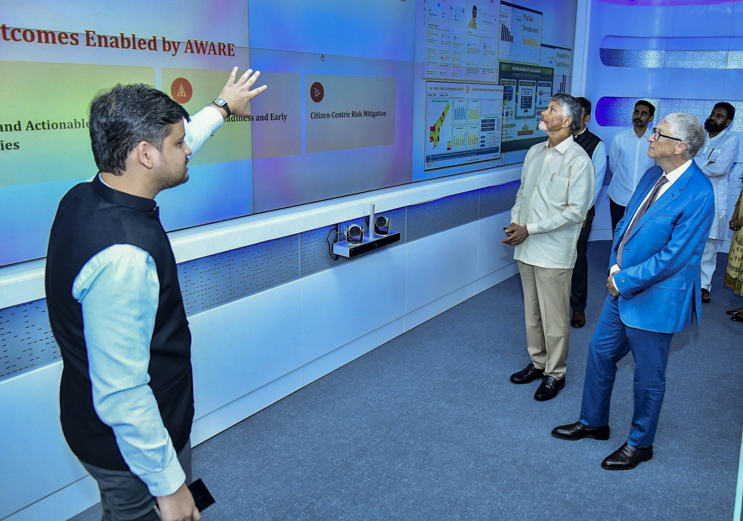 गेट्स ने नायडू से मुलाकात की और मंत्रियों व अधिकारियों के साथ बातचीत की। आंध्र प्रदेश सरकार की ओर से जारी प्रेस विज्ञप्ति के अनुसार, उन्होंने मुख्यमंत्री की दूरदर्शिता की सराहना करते हुए कहा कि वैश्विक नेताओं के बीच उनकी सोच आगे है।