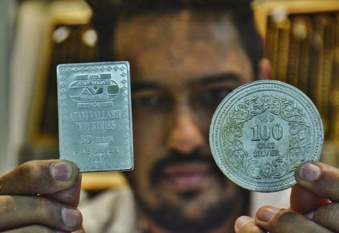 Thane: A man displays a silver bar and a silver coin at a shop as silver prices hit a record high, crossing Rs 4.10 lakh per kilogram, in Thane, Maharashtra, Thursday, Jan. 29, 2026. (PTI Photo)(PTI01_29_2026_000466B)