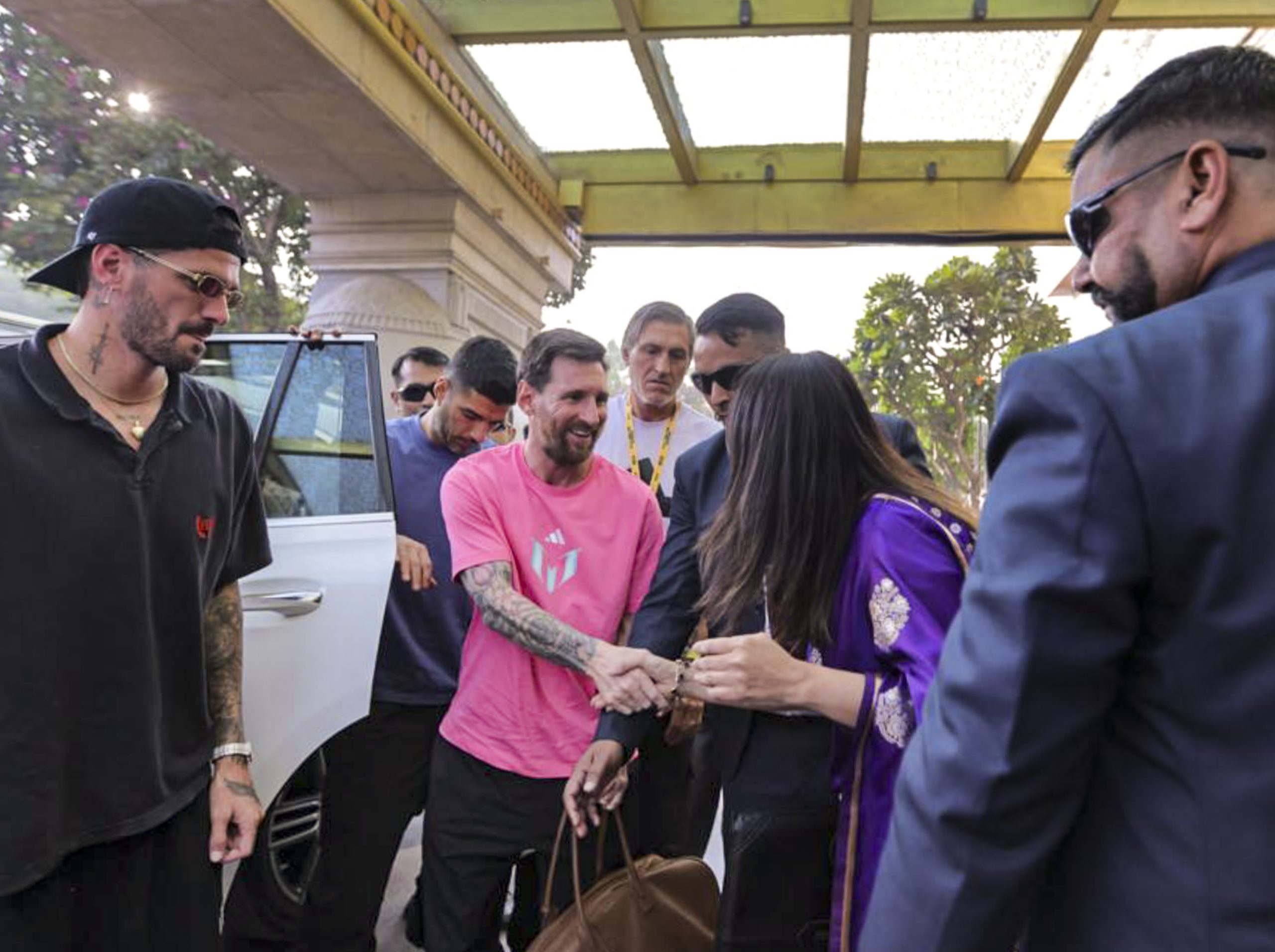 इससे पहले दिन में, मेसी अपने G.O.A.T. इंडिया टूर के अंतिम चरण के लिए मुंबई से यहां पहुंचे। हालांकि खराब मौसम के कारण उनकी उड़ान में काफी देरी हुई।