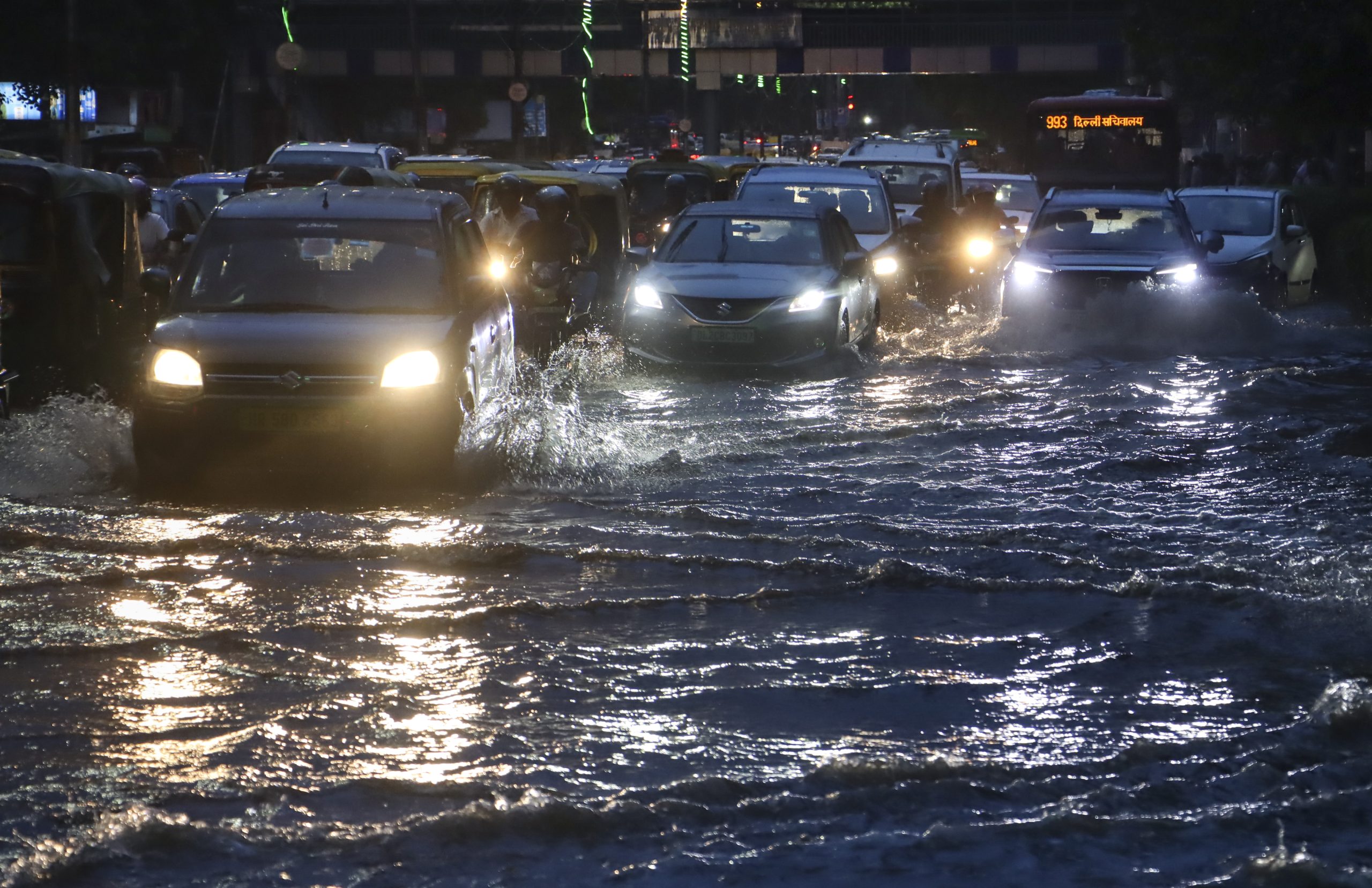 New Delhi: Vehicles move through a waterlogged road amid traffic jam after rain at ITO, in New Delhi, Wednesday, July 9, 2025. (PTI Photo) (PTI07_09_2025_000473B)