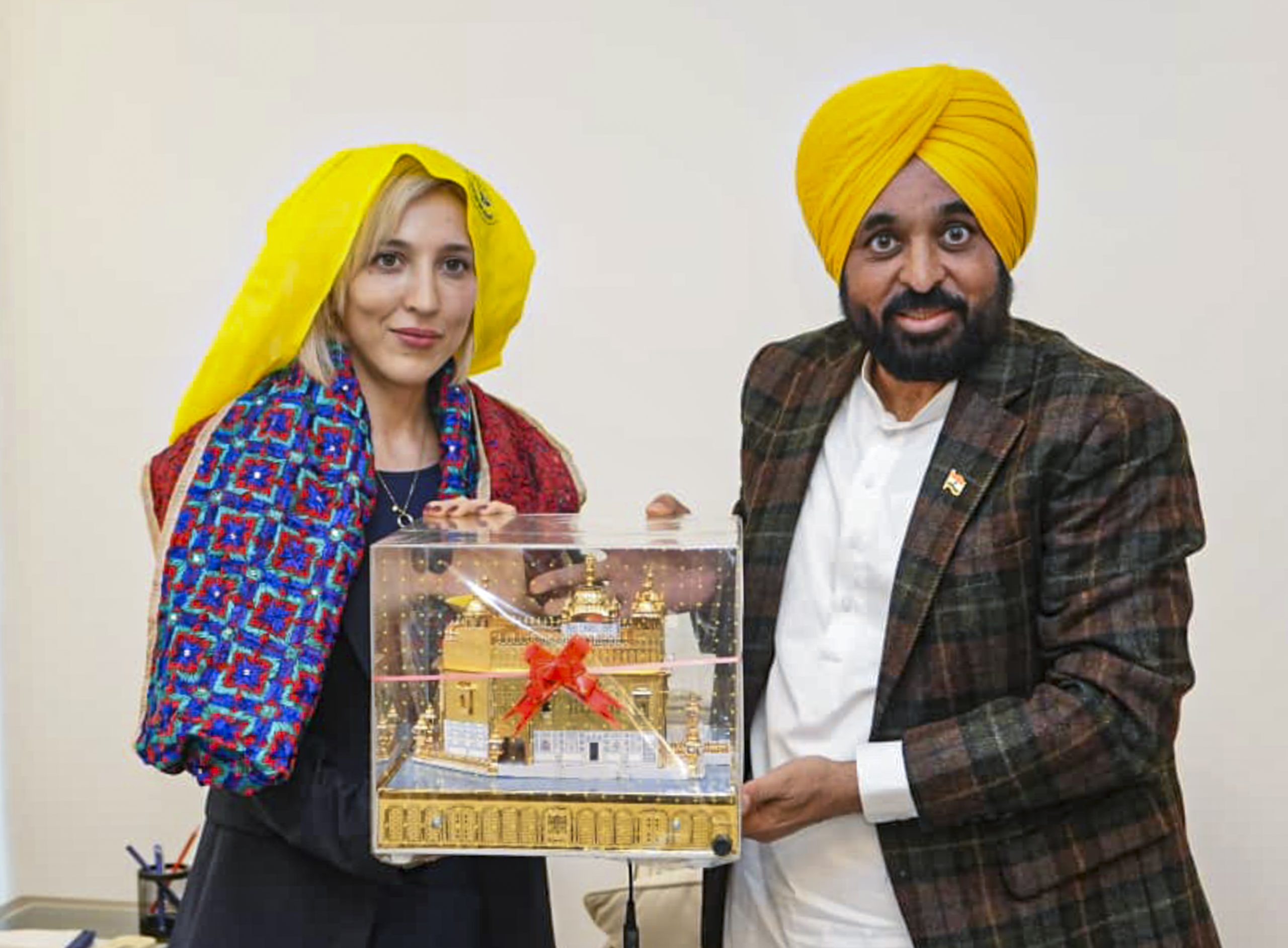 **EDS: THIRD PARTY IMAGE** In this image posted on Dec. 12, 2025, Punjab Chief Minister Bhagwant Mann with British Deputy High Commissioner to India Alba Smeriglio during a meeting, in Chandigarh. (@BhagwantMann/X via PTI Photo) (PTI12_12_2025_000259B)