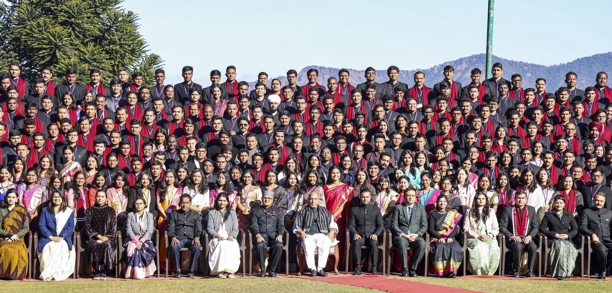 **EDS: THIRD PARTY IMAGE** In this image posted on Nov. 29, 2025, Union Defence Minister Rajnath Singh with others during the valedictory ceremony of the 100th Common Foundation Course at Lal Bahadur Shastri National Academy of Administration (LBSNAA), in Mussoorie, Uttarakhand. (@SpokespersonMoD/X via PTI Photo) (PTI11_29_2025_000278B)