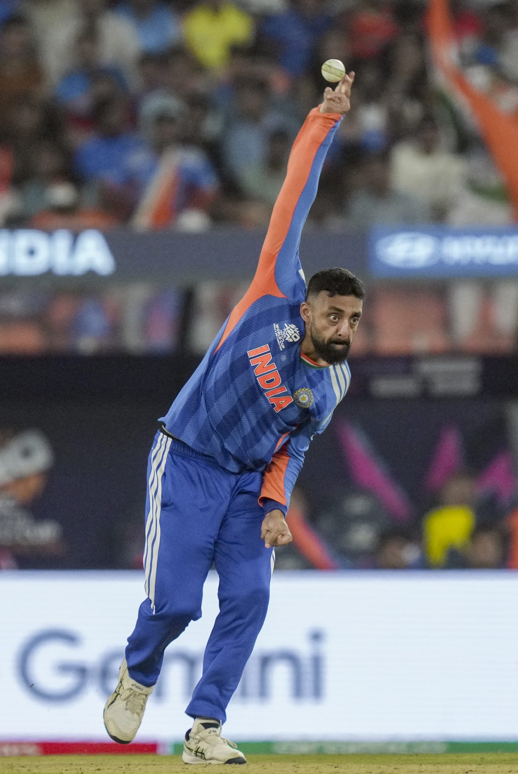 Ahmedabad: India's Varun Chakravarthy bowls a delivery during an ICC Men's T20 World Cup 2026 cricket match between India and Netherlands, at the Narendra Modi Stadium, in Ahmedabad, Wednesday, Feb. 18, 2026(PTI Photo/Kamal Kishore)(PTI02_18_2026_000860B)