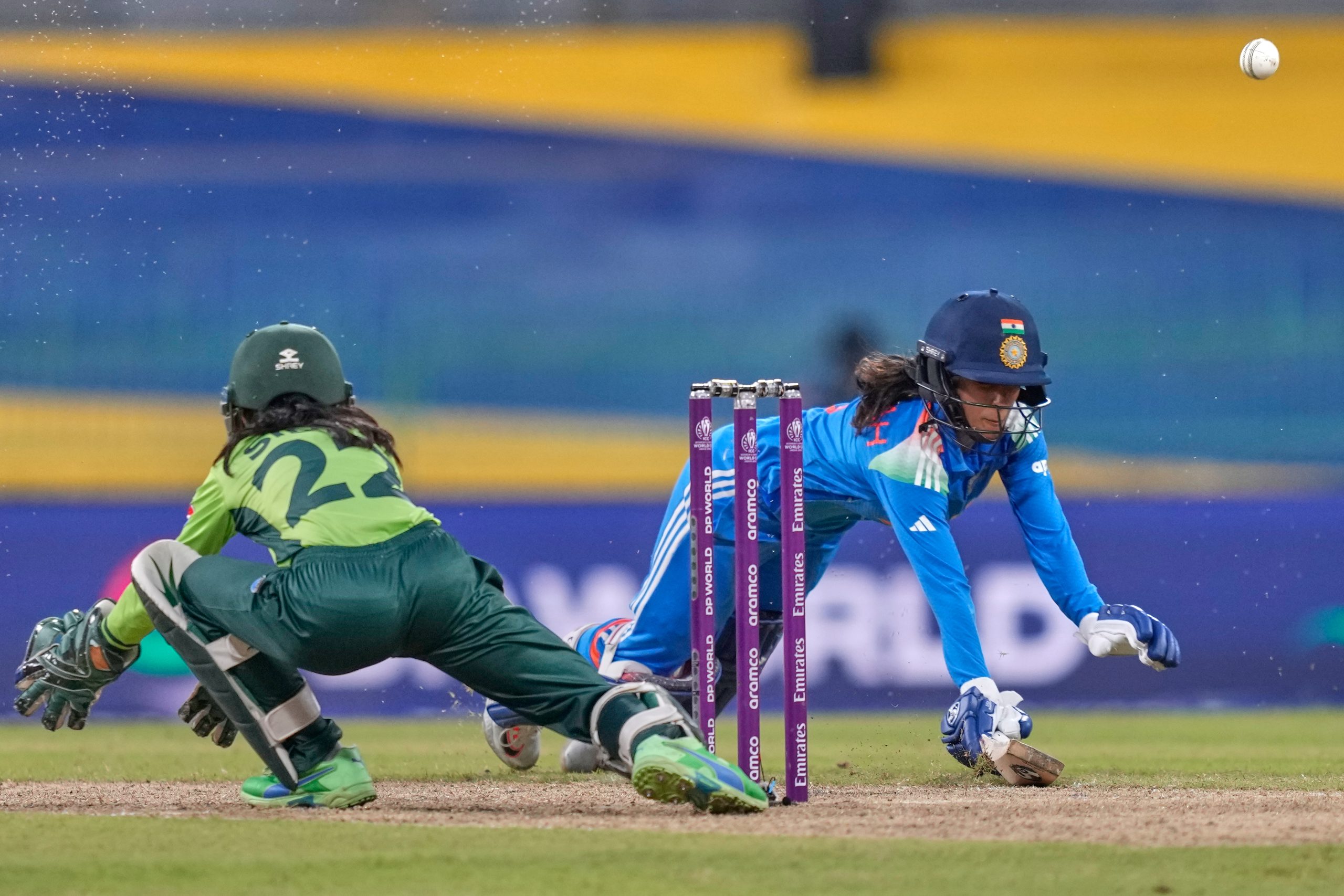 कोलंबो, 5 अक्टूबर (पीटीआई) — भारत ने रविवार को यहां महिला विश्व कप मैच में पाकिस्तान के खिलाफ 40 ओवर में पांच विकेट खोकर 172 रन बनाए। मैच के दौरान मैदान पर कीड़ों की वजह से हुई 15 मिनट की धूमन (फ्यूमिगेशन) ब्रेक के दोनों ओर भारत ने दो महत्वपूर्ण विकेट गंवाए — हर्लीन देओल (46) और जेमिमा रॉड्रिग्स (32)।