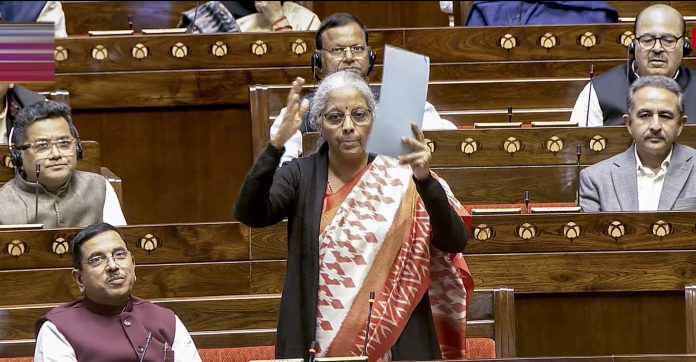 **EDS: THIRD PARTY; SCREENGRAB VIA SANSAD TV** New Delhi: Union Finance Minister Nirmala Sitharaman speaks during the Winter session of Parliament, in New Delhi, Tuesday, Dec. 2, 2025. (Sansad TV via PTI Photo)(PTI12_02_2025_000235B)