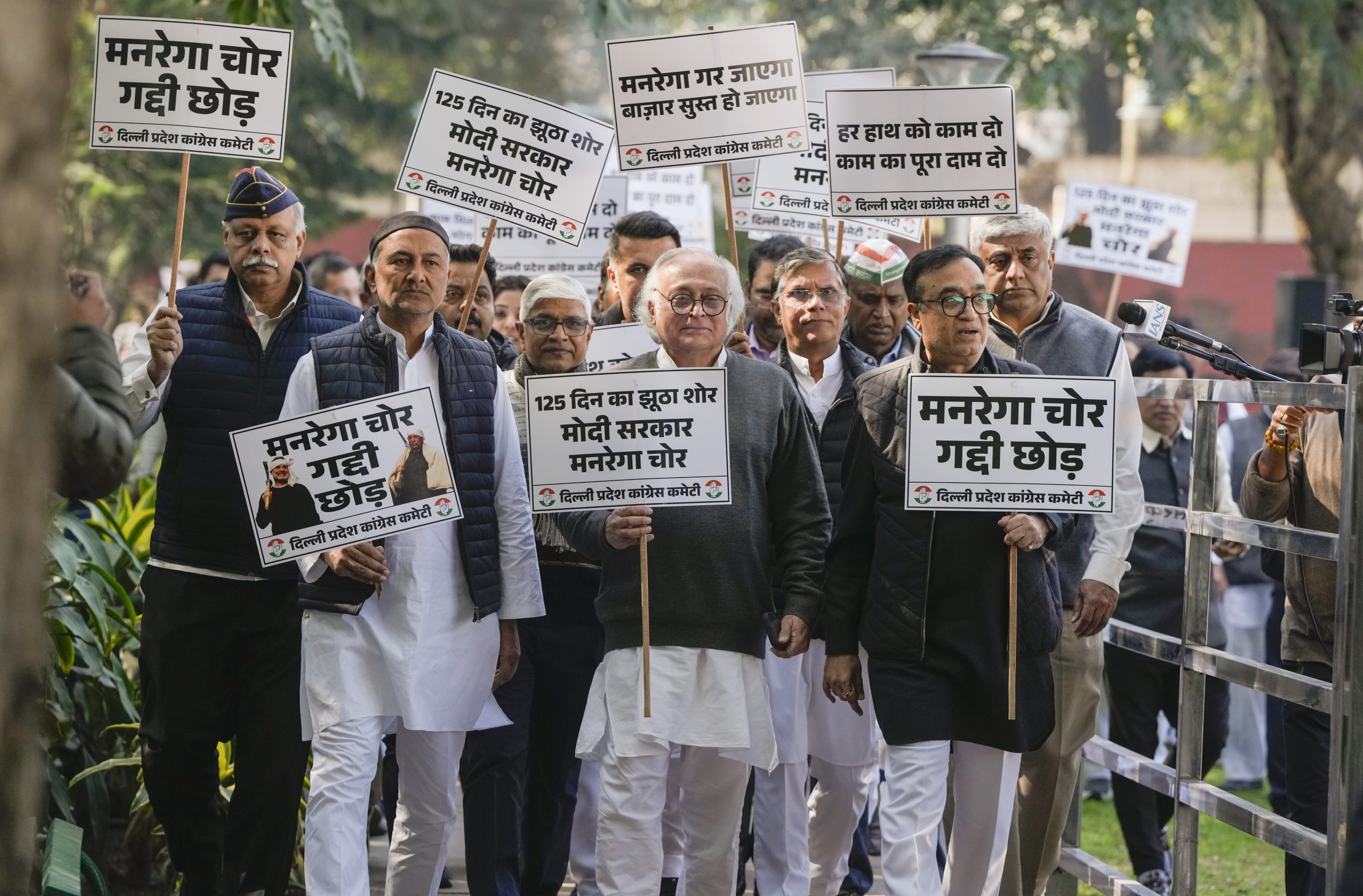 मनरेगा निरस्त: कांग्रेस का विरोध मार्च, बोली— पीएम नहीं चाहते थे गांधी से जुड़ा कानून चले