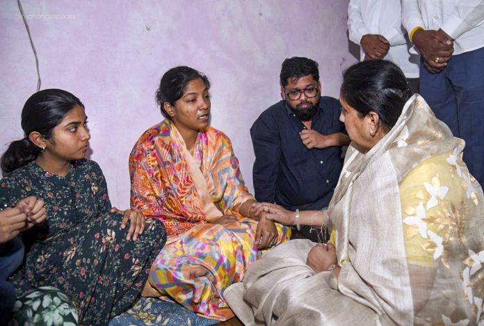 **EDS: THIRD PARTY IMAGE** In this image posted on Feb. 2, 2026, Maharashtra Deputy Chief Minister Sunetra Pawar, right, pays a condolence visit to the family of Vidyip Jadhav, former PSO to former Deputy CM Ajit Pawar, in Maharashtra. (@mahancpspeaks/X via PTI Photo)(PTI02_02_2026_000269B)
