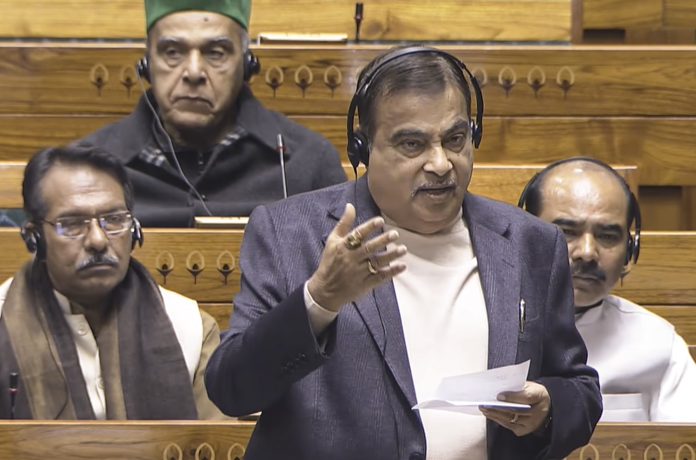 **EDS: THIRD PARTY IMAGE; SCREENGRAB VIA SANSAD TV** New Delhi: Union Minister Nitin Gadkari speaks in the Lok Sabha during the Winter session of Parliament, in New Delhi, Thursday, Dec. 18, 2025. (Sansad TV via PTI Photo) (PTI12_18_2025_000132B)