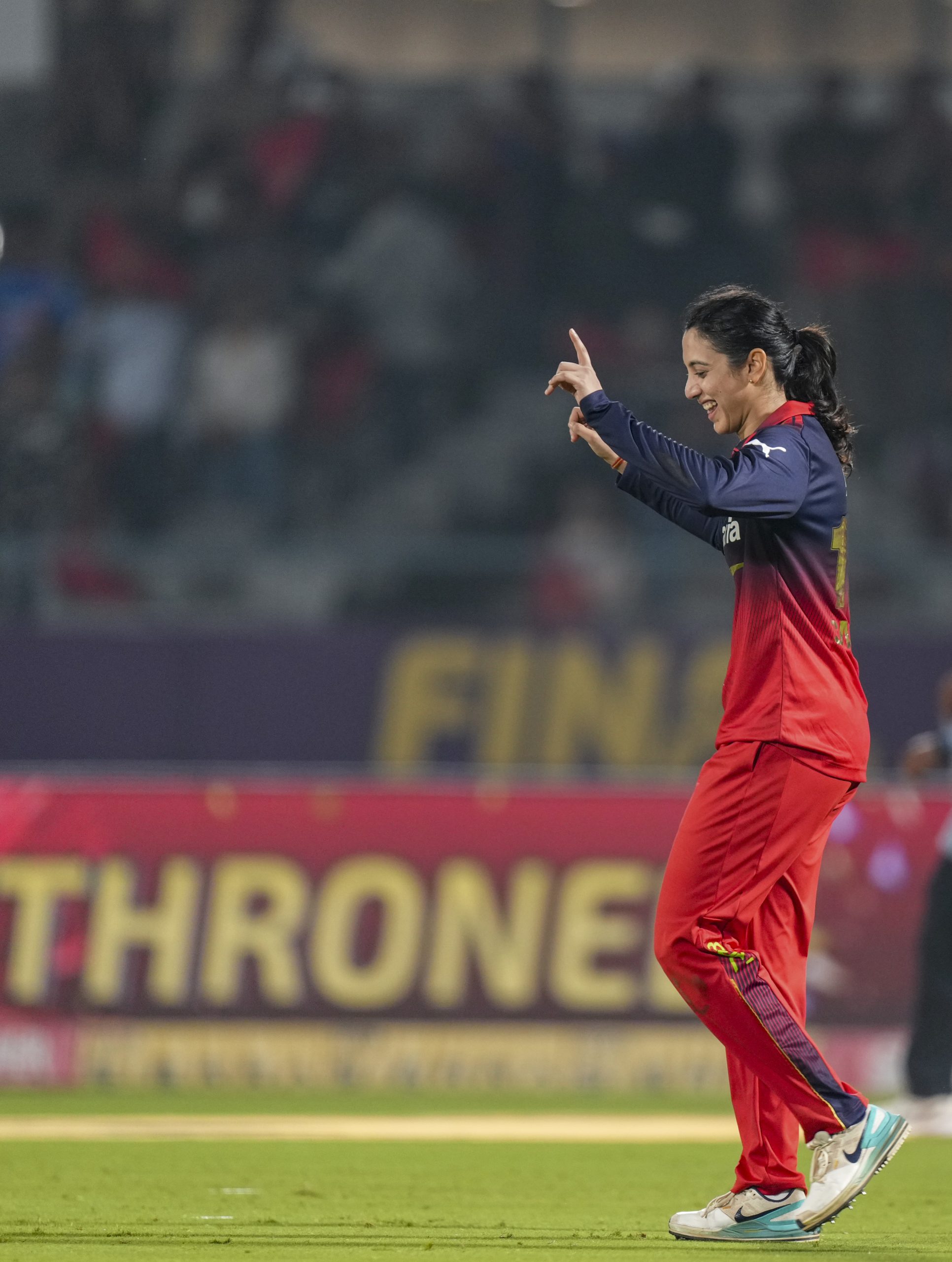 Vadodara: Royal Challengers Bengaluru's captain Smriti Mandhana celebrates after the team won the Women's Premier League (WPL) 2026 final T20 cricket match against Delhi Capitals, at Baroda Cricket Association Stadium, Kotambi in Vadodara, Gujarat, Thursday, Feb. 5, 2026. (PTI Photo/Kunal Patil)(PTI02_05_2026_000517B)