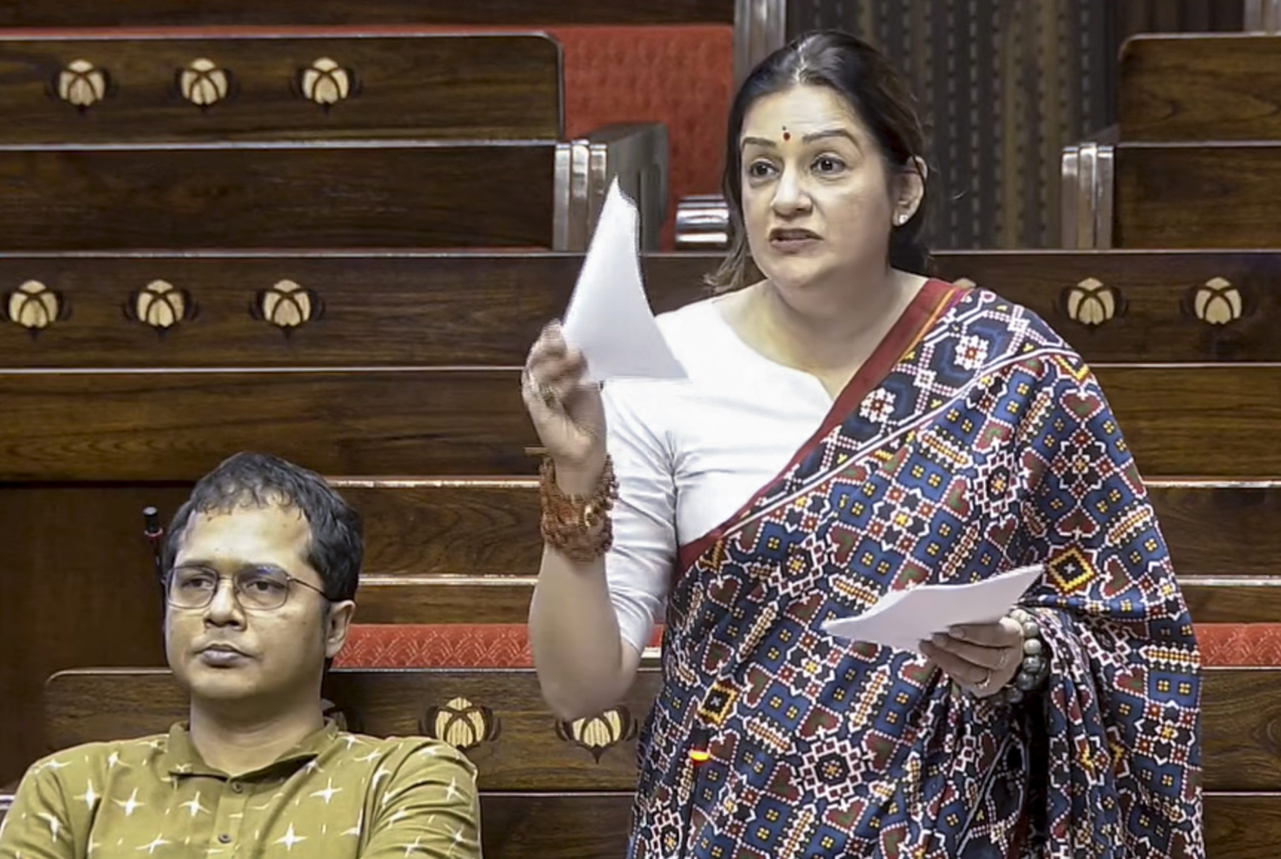 **EDS: THIRD PARTY IMAGE; SCREENGRAB VIA SANSAD TV** New Delhi: Shiv Sena (UBT) MP Priyanka Chaturvedi speaks in the Rajya Sabha during the Budget session of Parliament, in New Delhi, Thursday, Feb. 12, 2026. (Sansad TV via PTI Photo)(PTI02_12_2026_000180B)