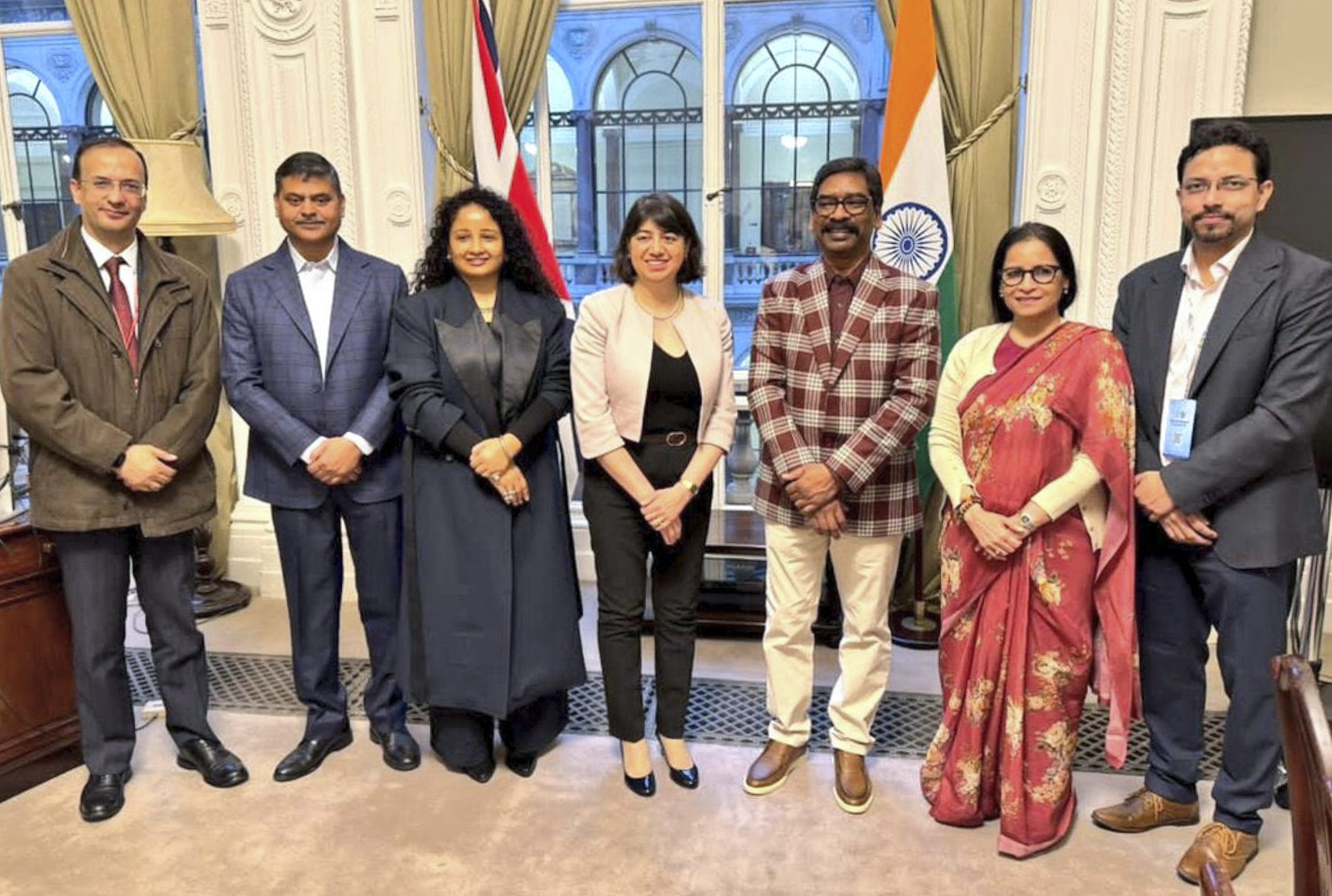 **EDS: TO GO WITH SPECIAL PACKAGE ON JHARKHAND; THIRD PARTY IMAGE** In this image received on Jan. 23, 2026, Jharkhand Chief Minister Hemant Soren with wife Kalpana Soren and others during a meeting with UK Minister Seema Malhotra, center, to strengthen Jharkhand-UK cooperation in education, skills and social development, in London. Other officials and leaders are also seen. (@JharkhandCMO/X via PTI Photo)(PTI01_23_2026_000077B)