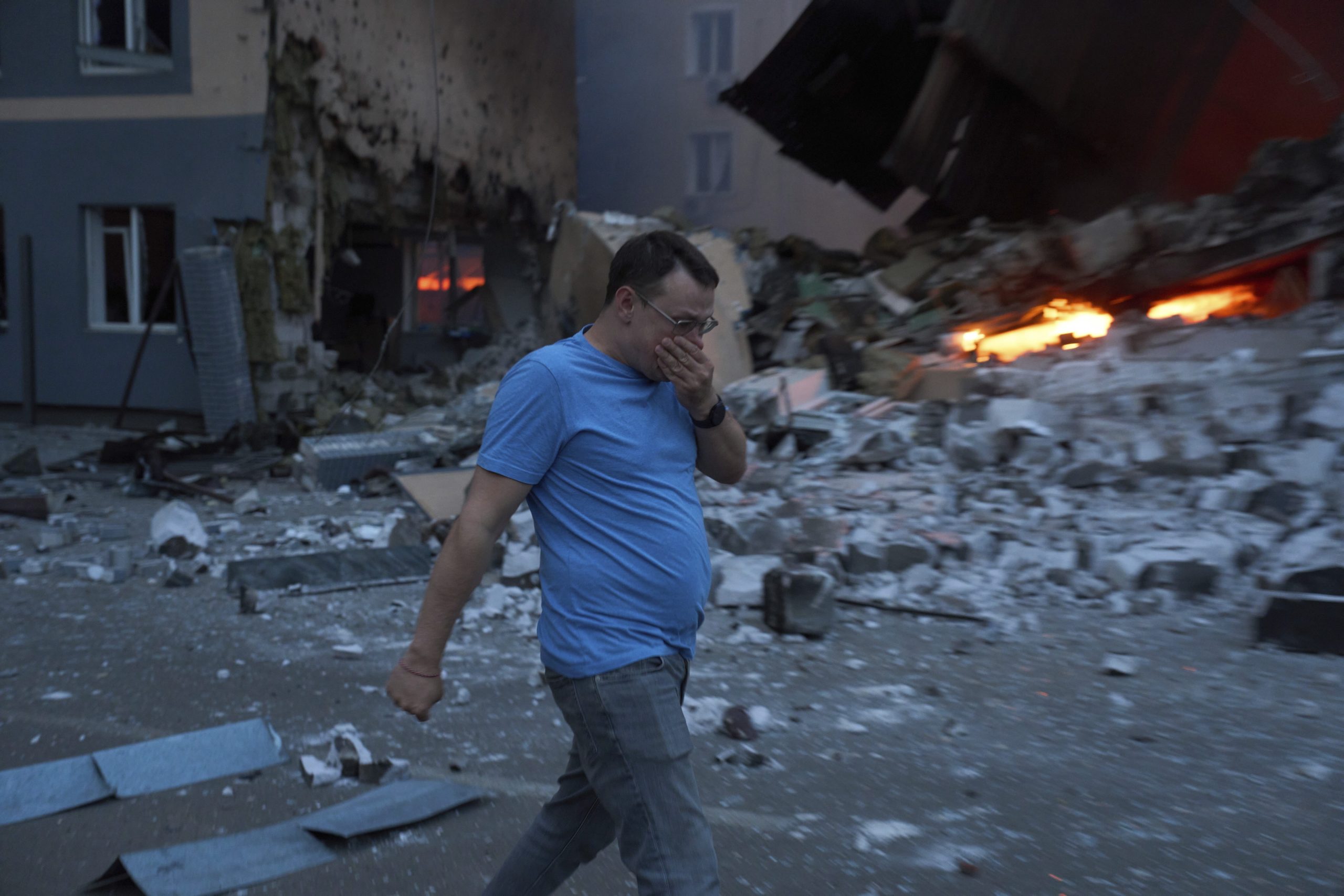उन्होंने कहा, “मैं बिस्तर पर लेटा हुआ था, हमेशा की तरह उम्मीद कर रहा था कि ये शाहेड (ड्रोन) मेरे पास से उड़ जाएँगे, और मैंने सुना कि शाहेड (जो घर से टकराया था)।” “मुझे लगा कि यह उड़ जाएगा, लेकिन यह और करीब आता गया और सब कुछ उड़ गया।” (एपी) जीआरएस जीआरएस