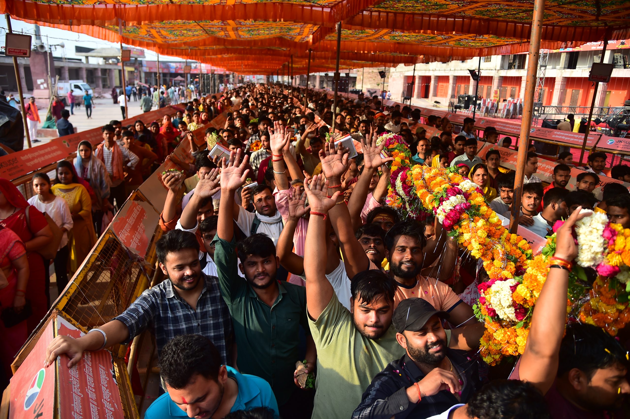 अयोध्या में, उत्सव के लिए सुबह हनुमान गढ़ी मंदिर में श्रद्धालु एकत्र हुए। पीटीआई कोर एबीएन एबीएन एमपीएल एमपीएल