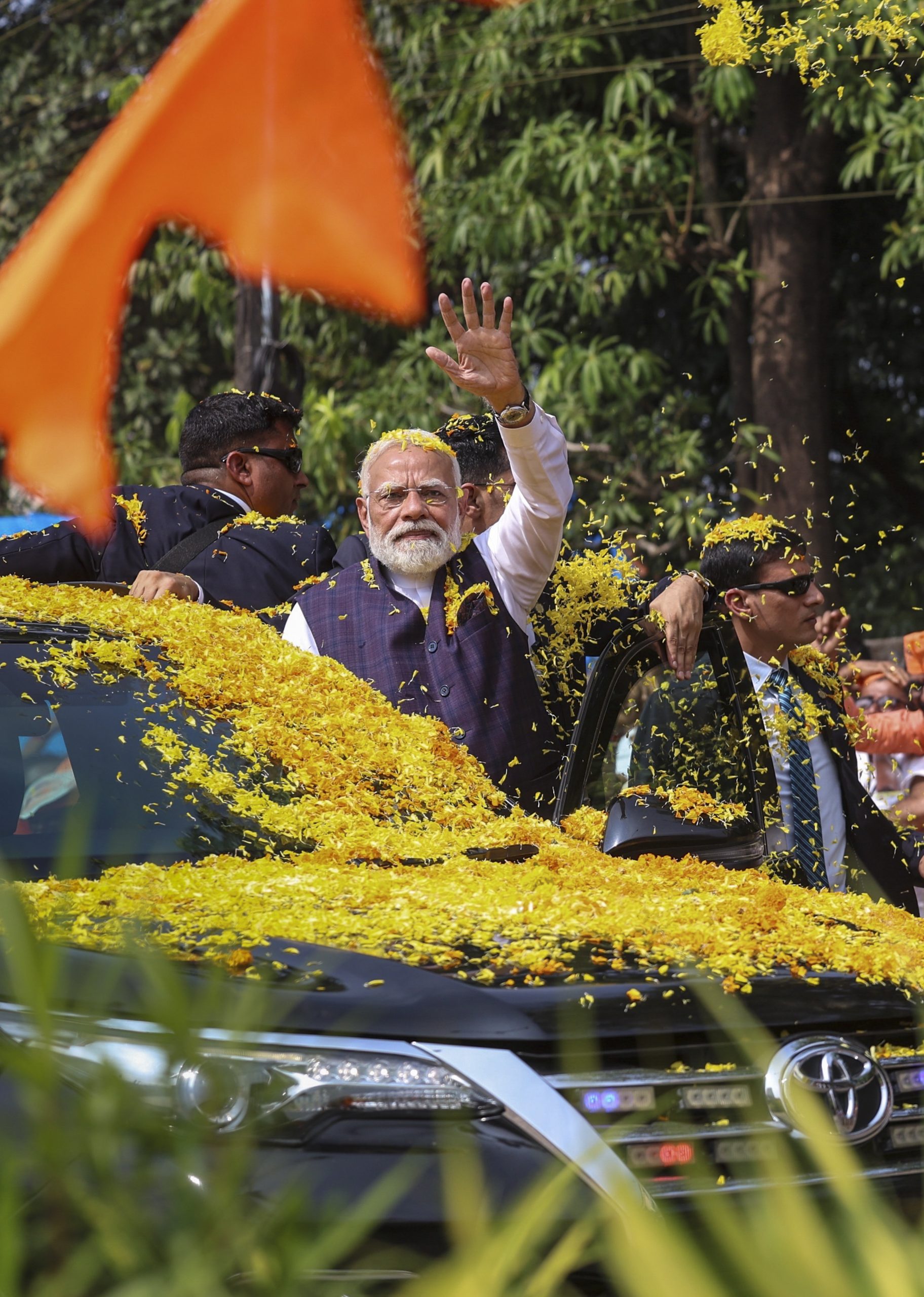 **EDS: THIRD PARTY IMAGE** In this image received on Nov. 28, 2025, Prime Minister Narendra Modi during a roadshow, in Udupi, Karnataka. (PMO via PTI Photo)(PTI11_28_2025_000183B)