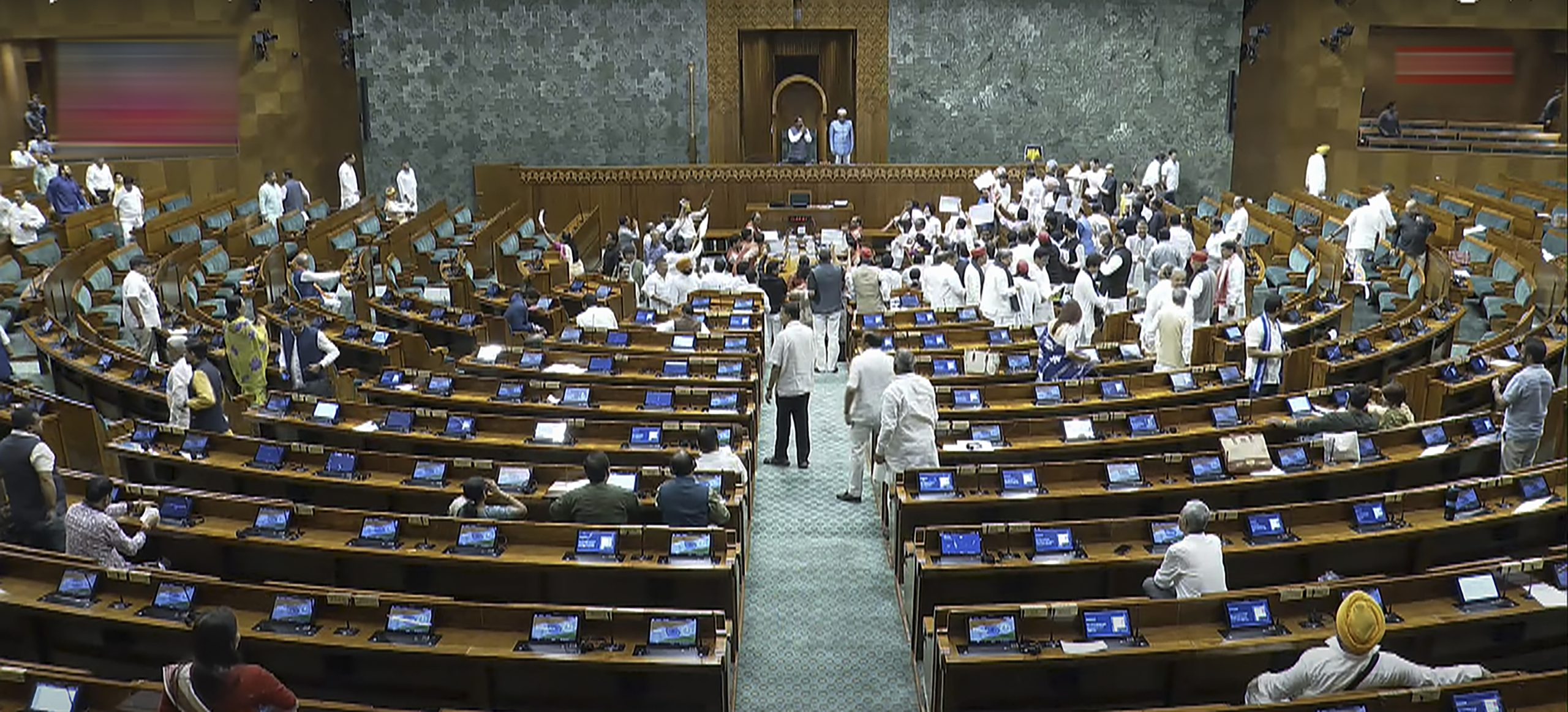 ਸਪੀਕਰ ਓਮ ਬਿੜਲਾ ਨੇ ਕਿਹਾ ਕਿ ਰੋਸ ਕਰ ਰਹੇ ਸੰਸਦ ਮੈਂਬਰ ਗਲੀ-ਮੁਹੱਲੇ ਵਾਲੀ ਭਾਸ਼ਾ ਅਤੇ ਬਰਤਾਵ ਵਰਤ ਰਹੇ ਹਨ ਅਤੇ ਚੇਤਾਵਨੀ ਦਿੱਤੀ ਕਿ ਉਹਨਾਂ ਨੂੰ “ਫੈਸਲਾਕੁਨ” ਕਦਮ ਚੁੱਕਣਾ ਪੈ ਸਕਦਾ ਹੈ।