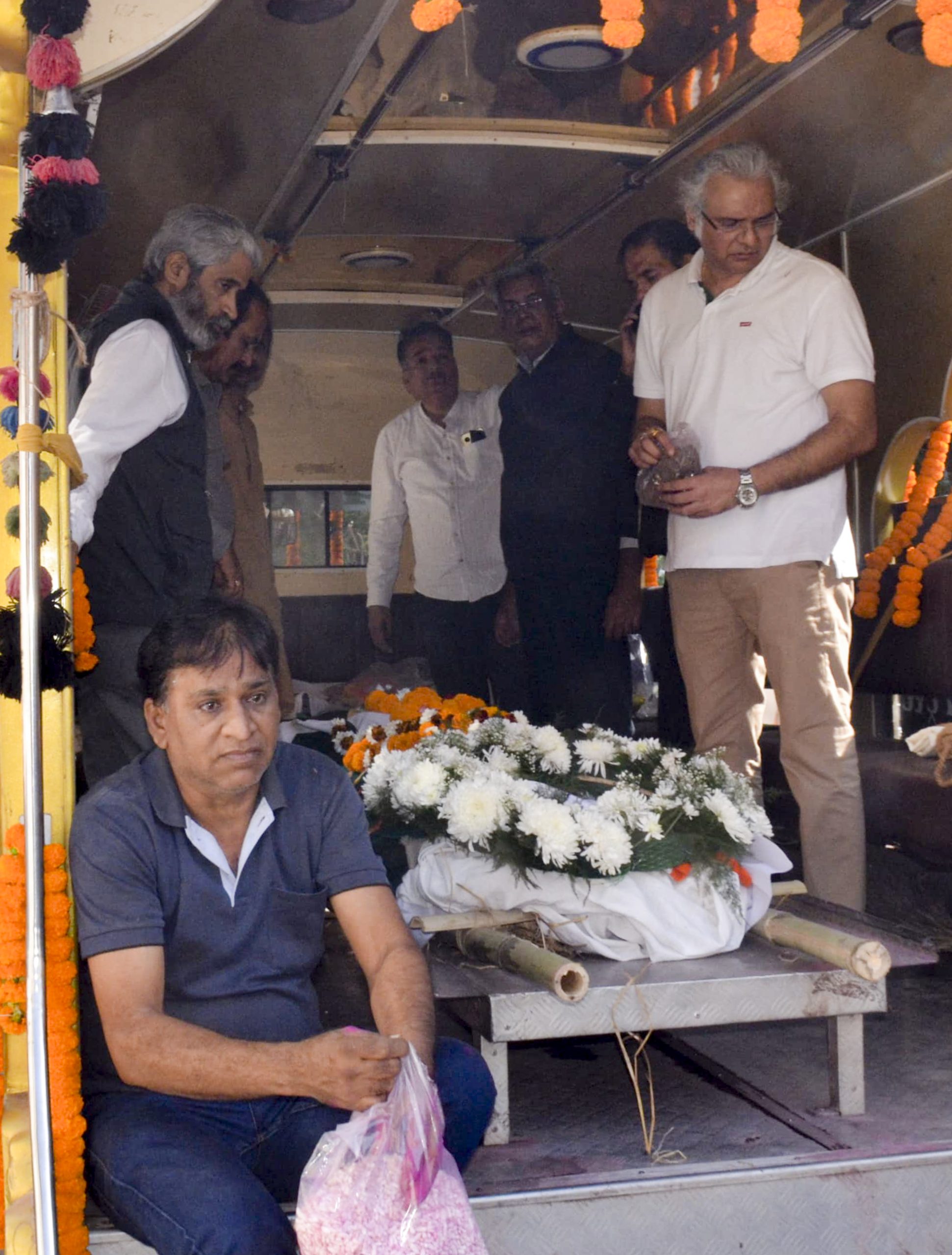 Raipur: Mortal remains of Hindi writer and Jnanpith awardee Vinod Kumar Shukla being carried during his last rites, a day after he passed away, in Raipur, Chhattisgarh, Wednesday, Dec. 24, 2025. (PTI Photo)(PTI12_24_2025_000110B)