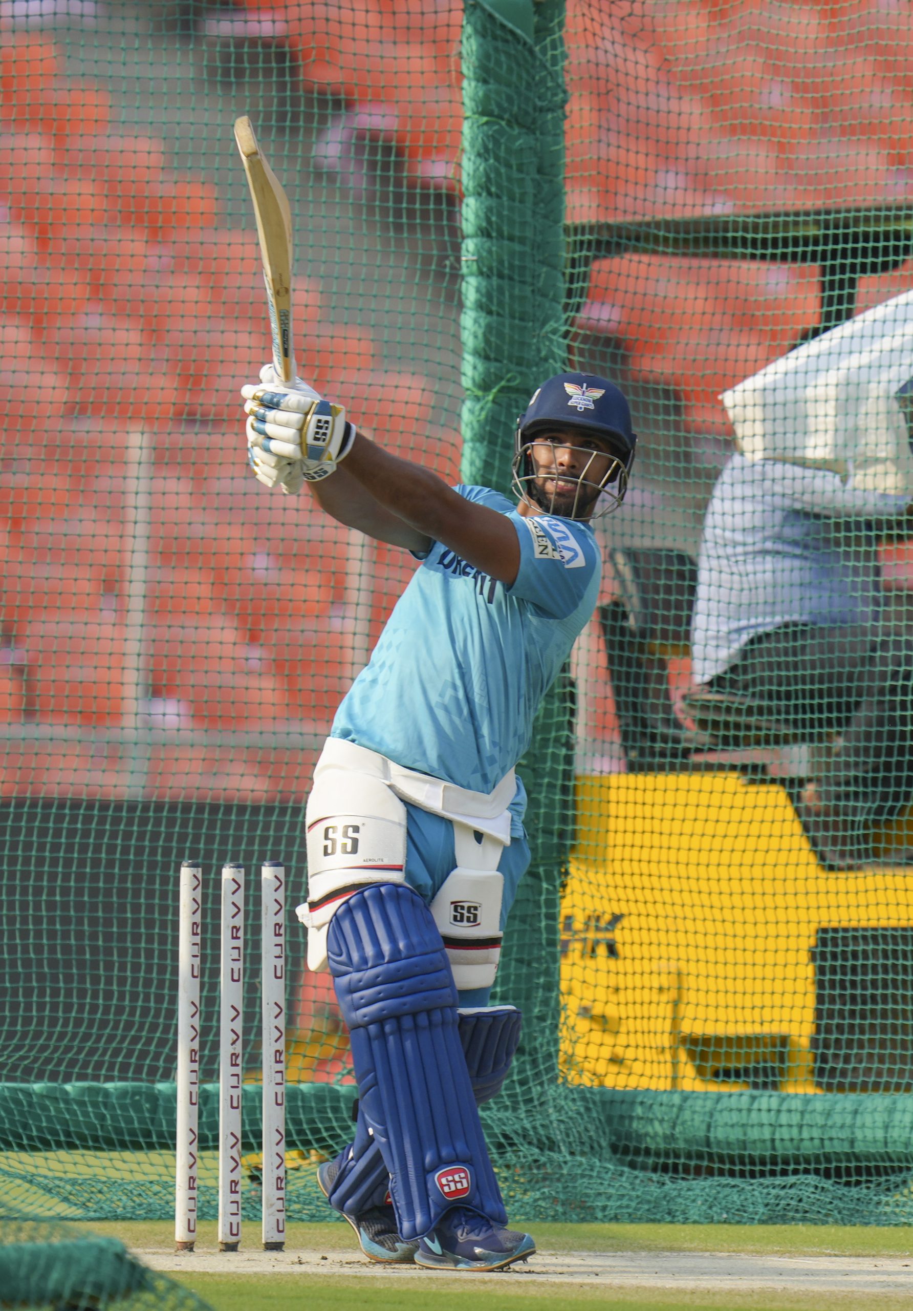 Ahmedabad: Lucknow Super Giants' Nicholas Pooran during a practice session ahead of the IPL 2025 cricket match between Gujarat Titans and Lucknow Super Giants, at Narendra Modi Stadium in Ahmedabad, Wednesday, May 21, 2025. (PTI Photo/Shahbaz Khan) (PTI05_21_2025_000349B)