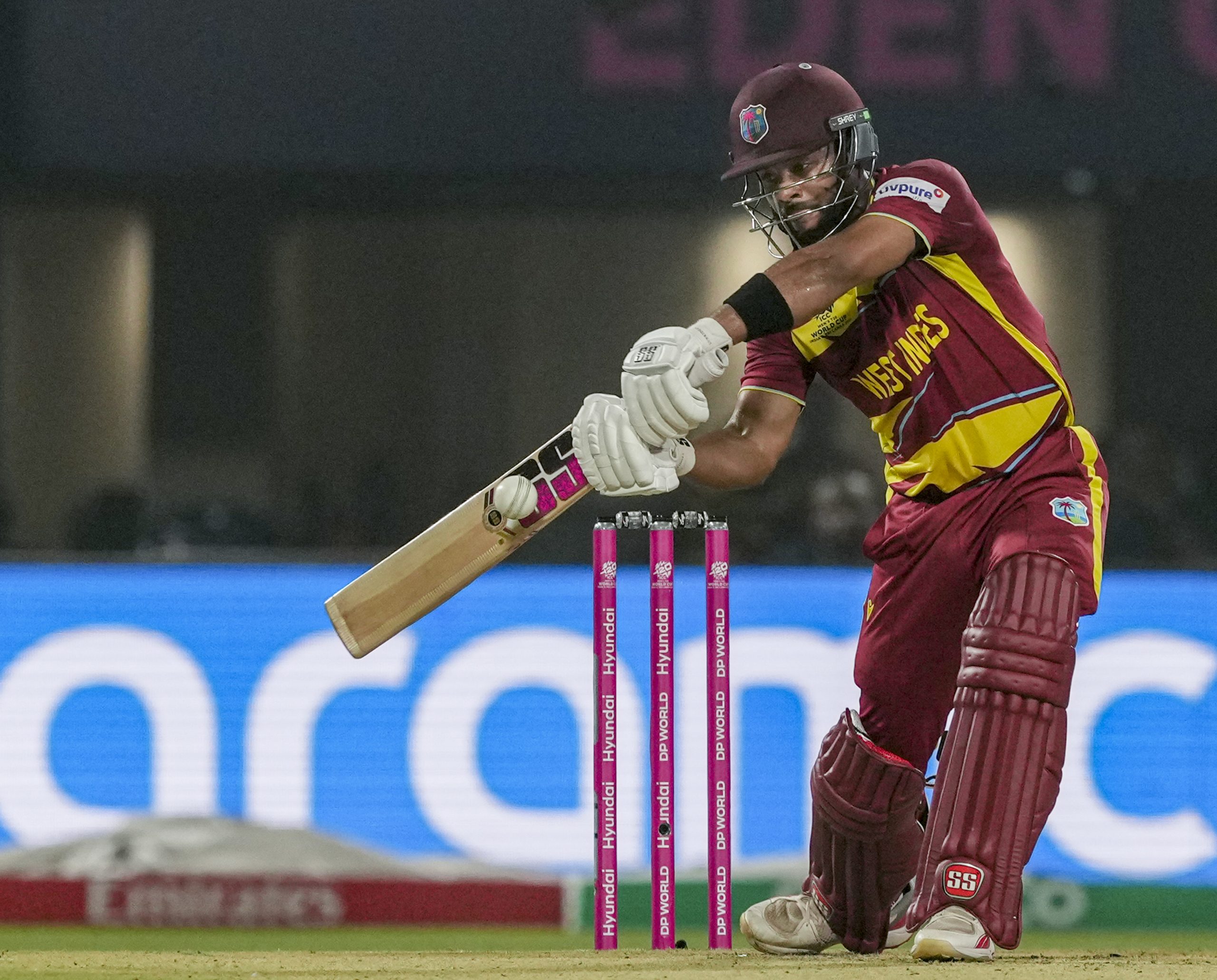 Kolkata: West Indies' captain Shai Hope plays a shot during the ICC Men's T20 World Cup 2026 cricket match between India and West Indies, at the Eden Gardens, in Kolkata, West Bengal, Sunday, March 1, 2026. (PTI Photo/Manvender Vashist Lav) (PTI03_01_2026_000698B)