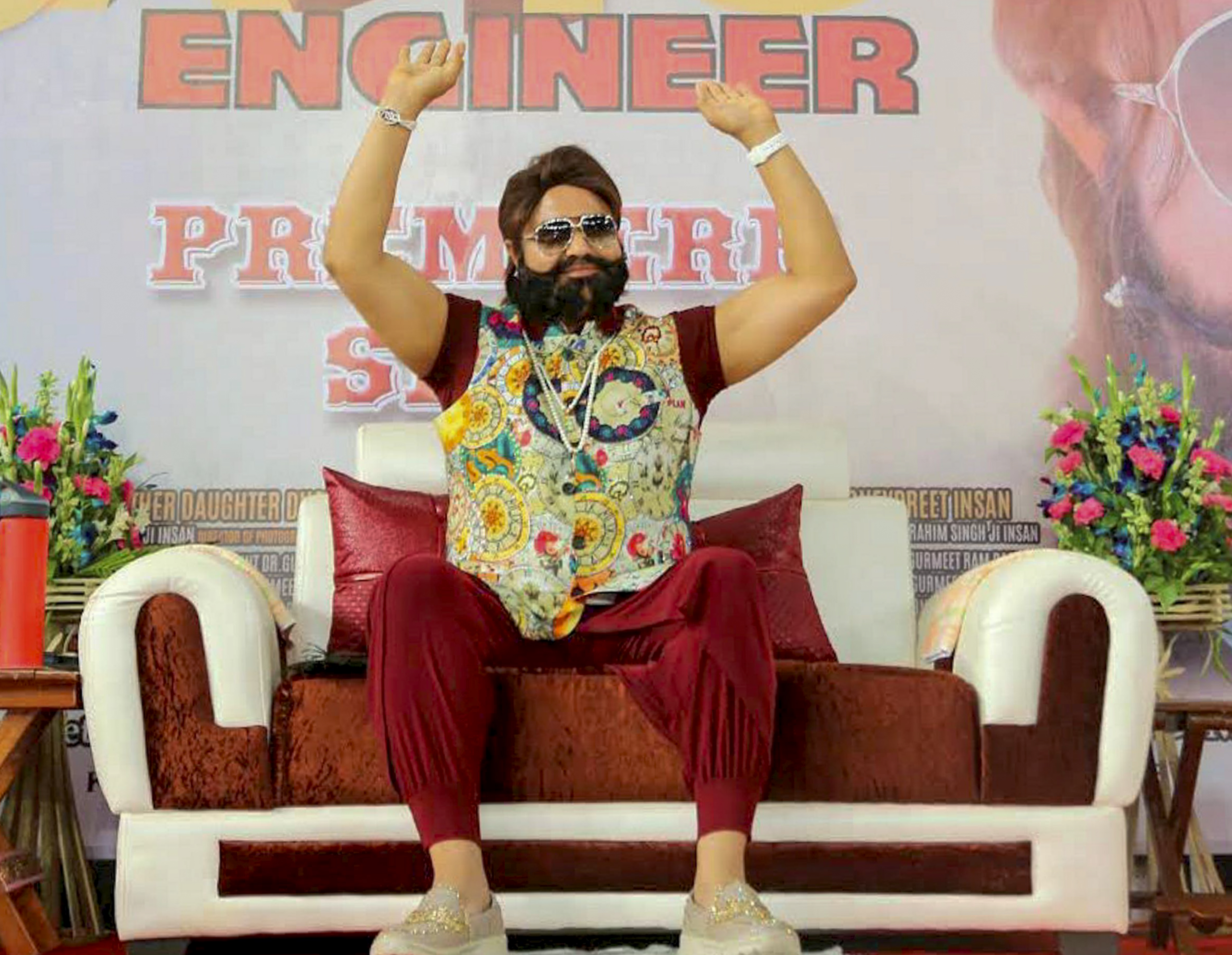 **EDS: FILE** New Delhi: In this Wednesday, May 17, 2025 file image, Dera Sacha Sauda chief Gurmeet Ram Rahim attends the premier of his film 'Jattu Engineer' in New Delhi. Rape convict Gurmeet Ram Rahim has been granted a 21-day furlough. (PTI Photo) (PTI04_09_2025_000113B) *** Local Caption ***