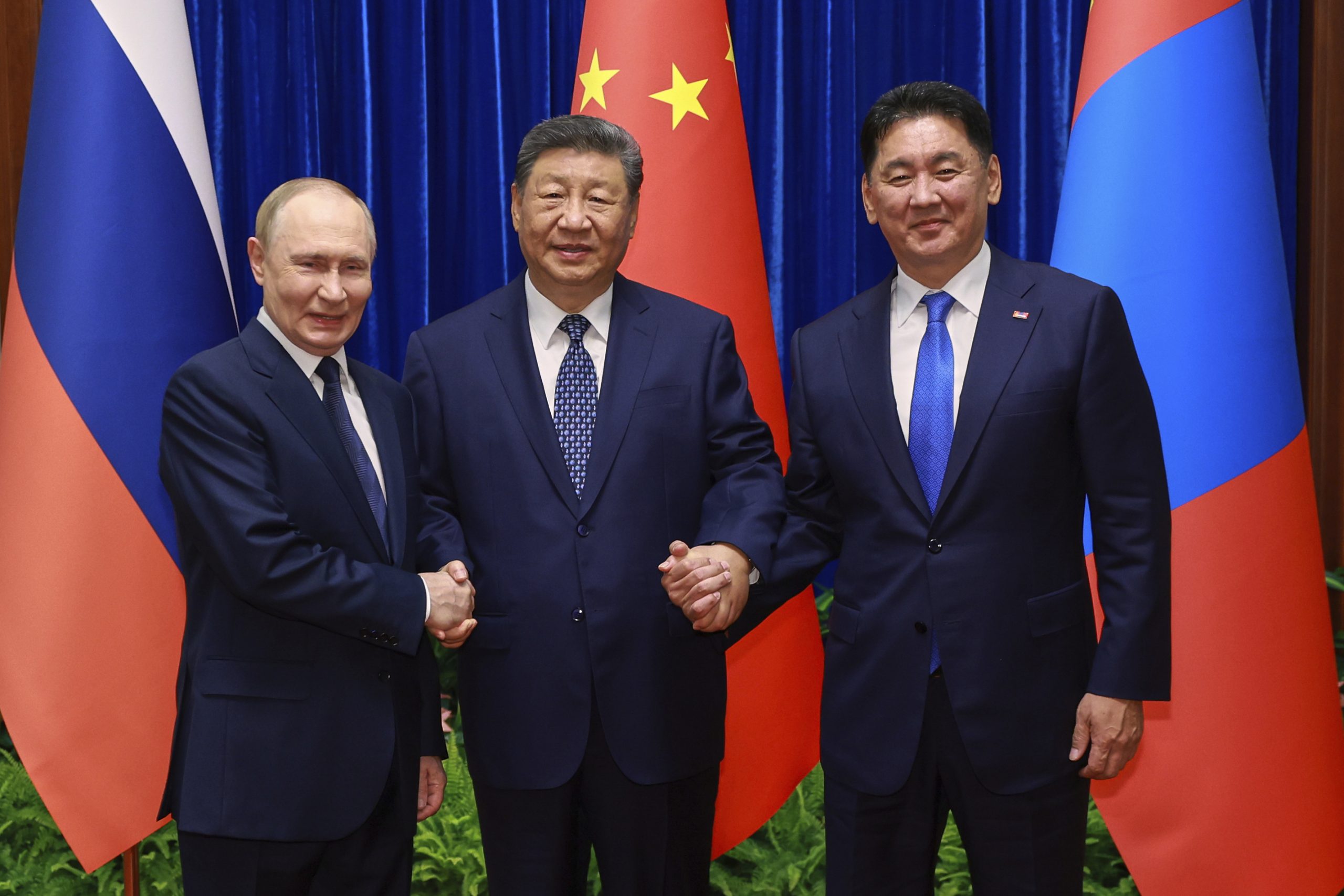पुतिन और शी ने अपनी वार्ता से पहले मंगोलियाई राष्ट्रपति खुरेलसुख उखना के साथ त्रिपक्षीय बैठक की। घास के मैदानों और खनिज खदानों से घिरा उनका यह देश दोनों दिग्गजों के बीच स्थित है।