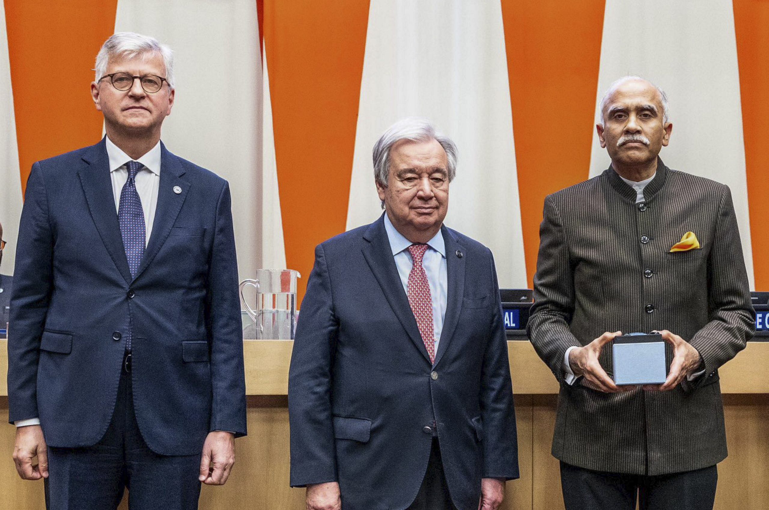 New Delhi: Delhi Chief Minister Rekha Gupta, state Minister Ashish Sood and others during ‘Pratibha Samman Samaroh’ at RPVV Raj Niwas Marg, in New Delhi, Friday, May 30, 2025. (PTI Photo) **EDS: THIRD PARTY IMAGE** In this image posted by @IndiaUNNewYork via X on May 30, 2025, India’s Permanent Representative to the UN Ambassador Parvathaneni Harish receives the Dag Hammarskjold Medal from the UN Secretary-General Antonio Guterres on behalf of Brigadier General Amitabh Jha, who served with the UN Disengagement Observer Force (UNDOF), and Havildar Sanjay Singh, who was deployed with the UN Stabilisation Mission in the Democratic Republic of Congo (MONUSCO) who were honoured posthumously by the United Nations on International Day of UN Peacekeepers, at UN headquarters, in New York. (@IndiaUNNewYork on X via PTI Photo) (PTI05_30_2025_000058B)