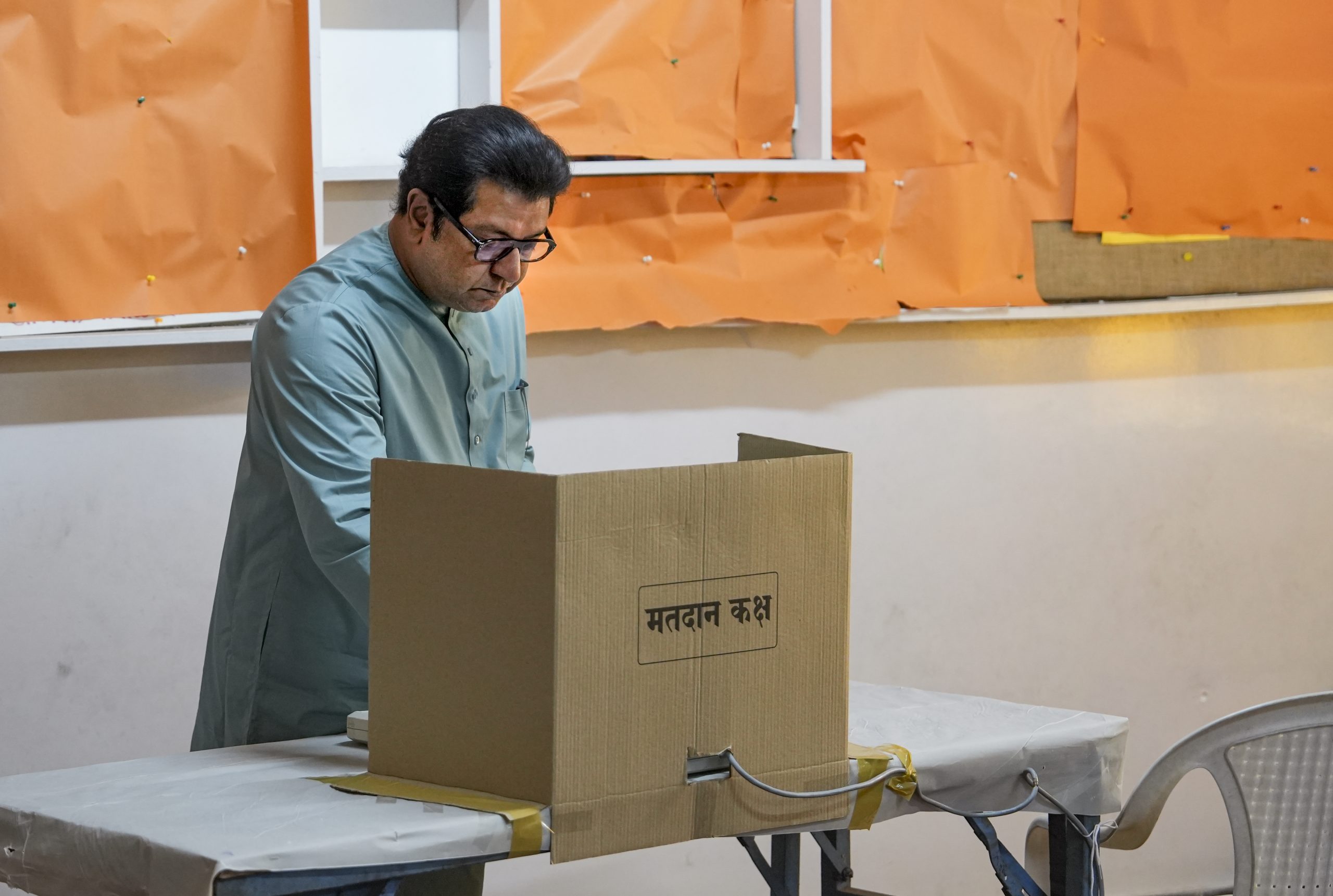Mumbai: Maharashtra Navnirman Sena (MNS) chief Raj Thackeray casts a vote in the Brihanmumbai Municipal Corporation (BMC) polls, in Mumbai, Thursday, Jan. 15, 2026. (PTI Photo/Kunal Patil)(PTI01_15_2026_000183B)