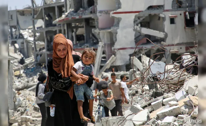 इज़राइल के हवाई और ज़मीनी युद्ध ने गाजा के विशाल क्षेत्रों को तबाह कर दिया है और लगभग 90 प्रतिशत आबादी को अपने घरों से बेघर कर दिया है। सहायता समूहों का कहना है कि इज़राइली सैन्य प्रतिबंधों और कानून-व्यवस्था की बिगड़ती स्थिति के कारण उन्हें भोजन और अन्य सहायता पहुँचाने में कठिनाई हो रही है, और विशेषज्ञों ने अकाल की चेतावनी दी है। (एपी) जीआरएस जीआरएस