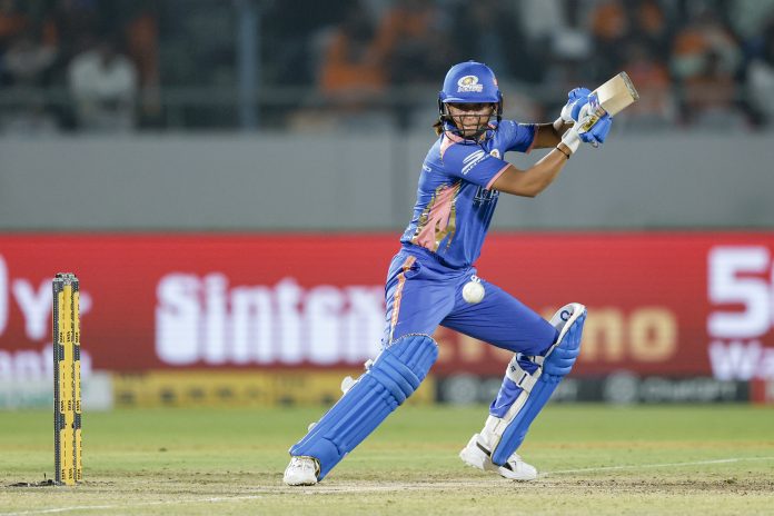 **EDS: THIRD PARTY IMAGE** In this image released on Jan. 30, 2026, Mumbai Indians' captain Harmanpreet Kaur plays a shot during a Women's Premier League (WPL) 2026 T20 International cricket match between Gujarat Giants and Mumbai Indians, at BCA Stadium, in Vadodara, Gujarat. (BCCI via PTI Photo) (PTI01_30_2026_000392B)