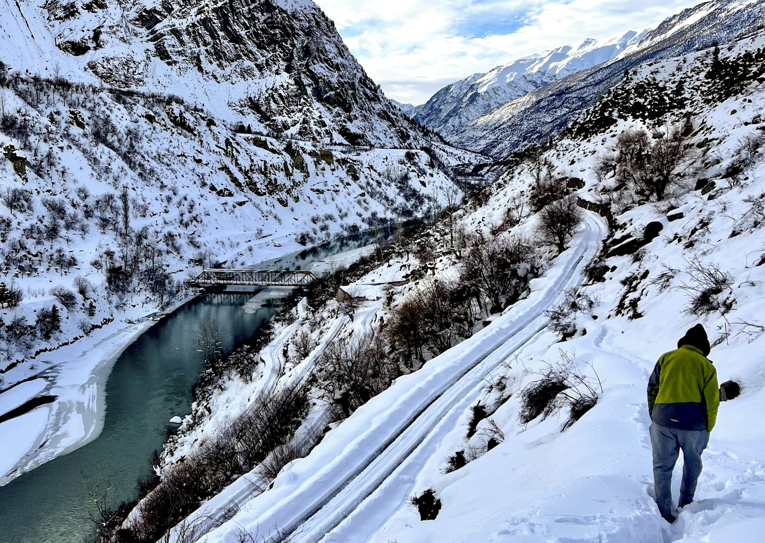 Lahaul and Spiti: A man walks through snow near Rashel village after fresh snowfall, in Lahaul and Spiti district, Himachal Pradesh, Friday, Jan. 30, 2026. (PTI Photo) (PTI01_30_2026_000388B)