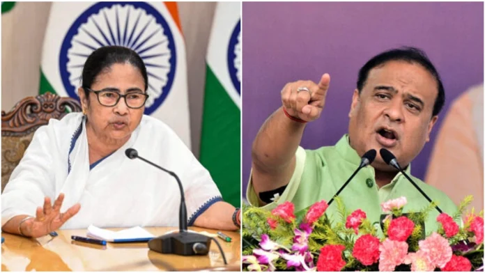 কলকাতা/গুয়াহাটি, ১৯ জুলাই (পিটিআই) – শনিবার পশ্চিমবঙ্গের মুখ্যমন্ত্রী মমতা বন্দ্যোপাধ্যায় এবং তার আসামের সমকক্ষ হিমন্ত বিশ্ব শর্মা-র মধ্যে কথার লড়াই শুরু হয়েছে। মমতা অভিযোগ করেছেন যে উত্তর-পূর্ব রাজ্যের বিজেপি-নেতৃত্বাধীন সরকার বাংলাভাষী মানুষকে “হুমকি” দিচ্ছে, যার জবাবে হিমন্ত তাকে “তোষণের” রাজনীতি করার জন্য তীব্র তিরস্কার করেছেন।