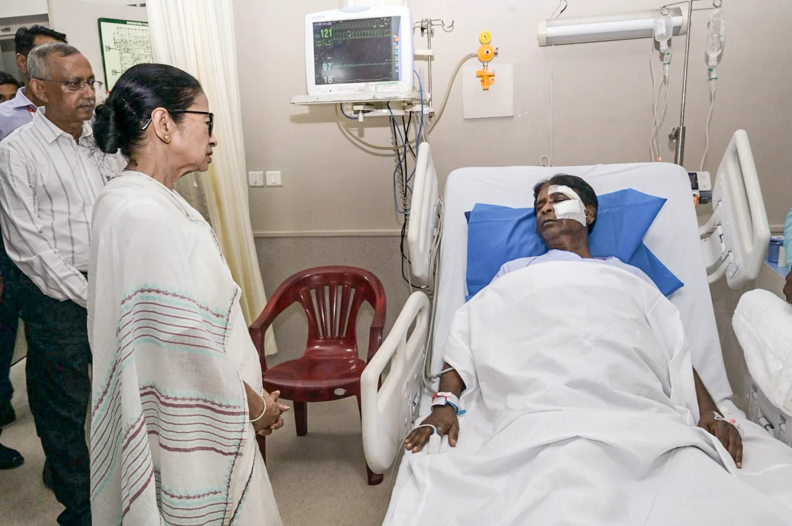 আহত সাংসদ, তাঁর স্ত্রী ও ছেলের সঙ্গে কয়েক মিনিট কথা বলার পর বন্দ্যোপাধ্যায় তাঁর চিকিৎসায় নিযুক্ত ডাক্তারদের দলের সঙ্গে পরামর্শ করেন।