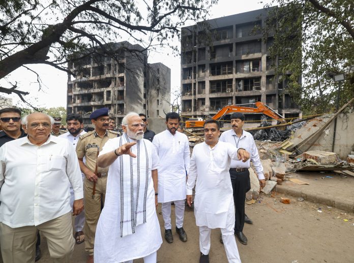 আহমেদাবাদ, ১৩ জুন (পিটিআই) – প্রধানমন্ত্রী নরেন্দ্র মোদি শুক্রবার এয়ার ইন্ডিয়া বিমান দুর্ঘটনার ঘটনাস্থল পরিদর্শনের পর গুজরাট সরকারের শীর্ষ কর্মকর্তাদের সাথে একটি পর্যালোচনা বৈঠক করেছেন।