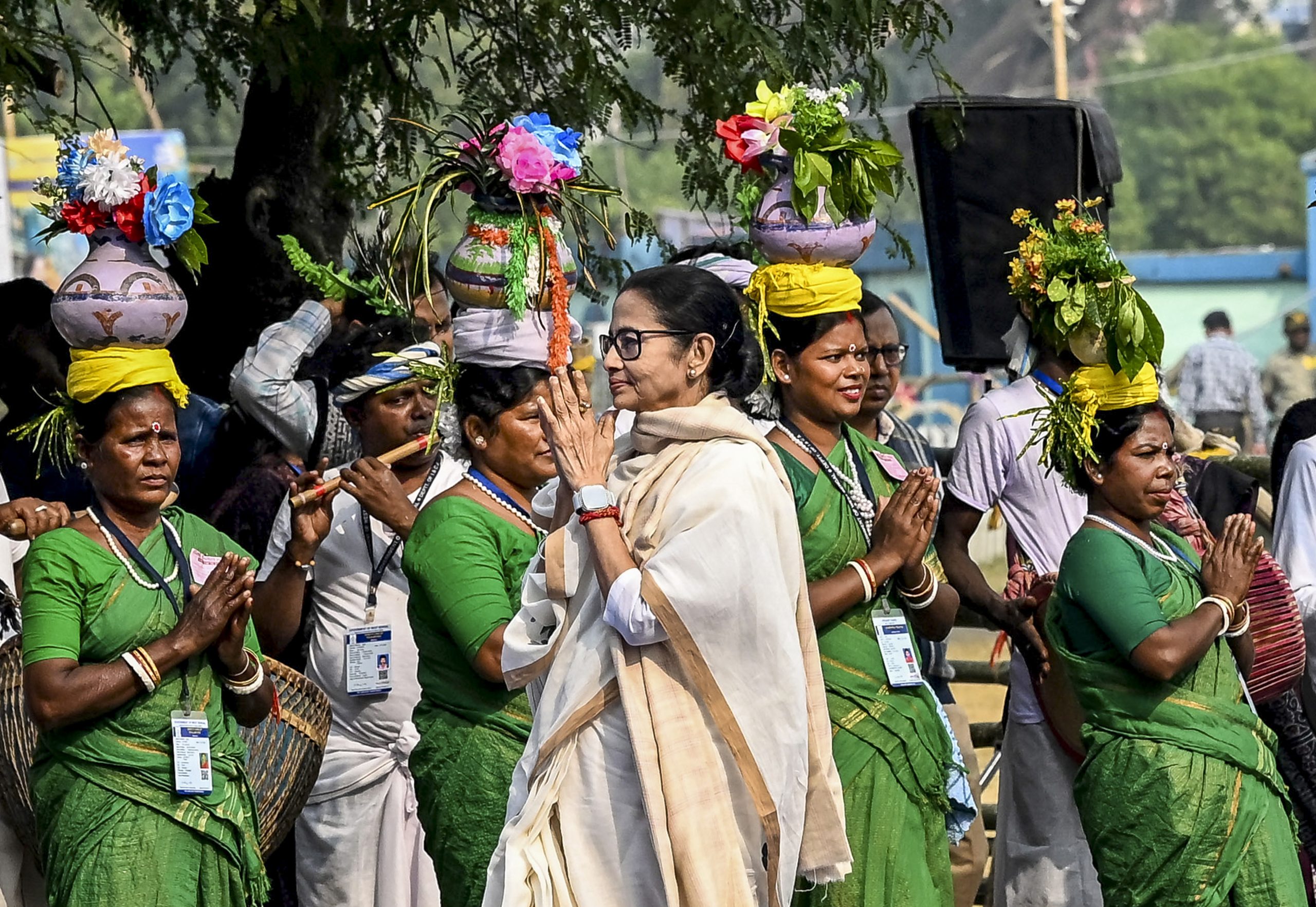 Krishnanagar: West Bengal Chief Minister Mamata Banerjee during inauguration of a rural roadways project, in Krishnanagar, Nadia district, Thursday, Dec. 11, 2025. (PTI Photo)(PTI12_11_2025_000275B)