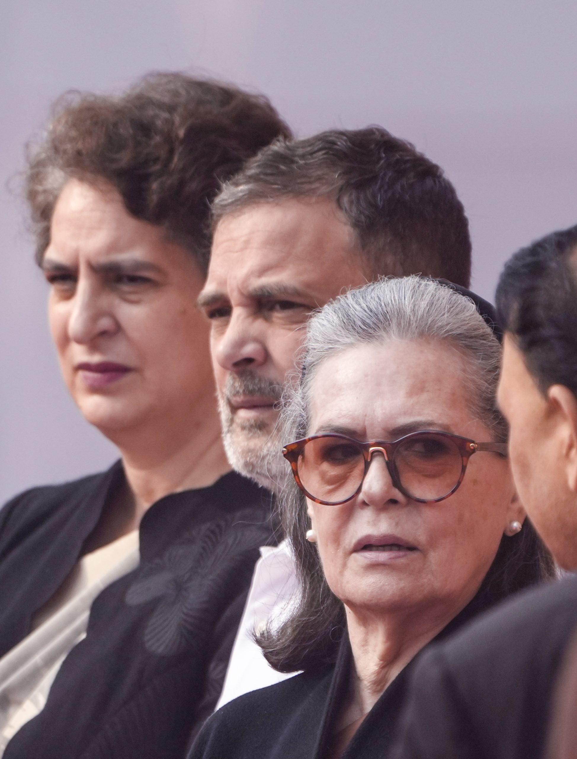 **EDS, YEARENDERS 2025: EDITOR’S PICK** New Delhi: LoP in the Lok Sabha Rahul Gandhi with Congress MPs Sonia Gandhi and Priyanka Gandhi Vadra during a ceremony to pay tribute to the martyrs of the 2001 Parliament attack, marking its 24th anniversary, at Samvidhan Sadan, in New Delhi, Saturday, Dec. 13, 2025. (PTI Photo/Shahbaz Khan)(PTI12_13_2025_000157B)(PTI12_31_2025_000347B)