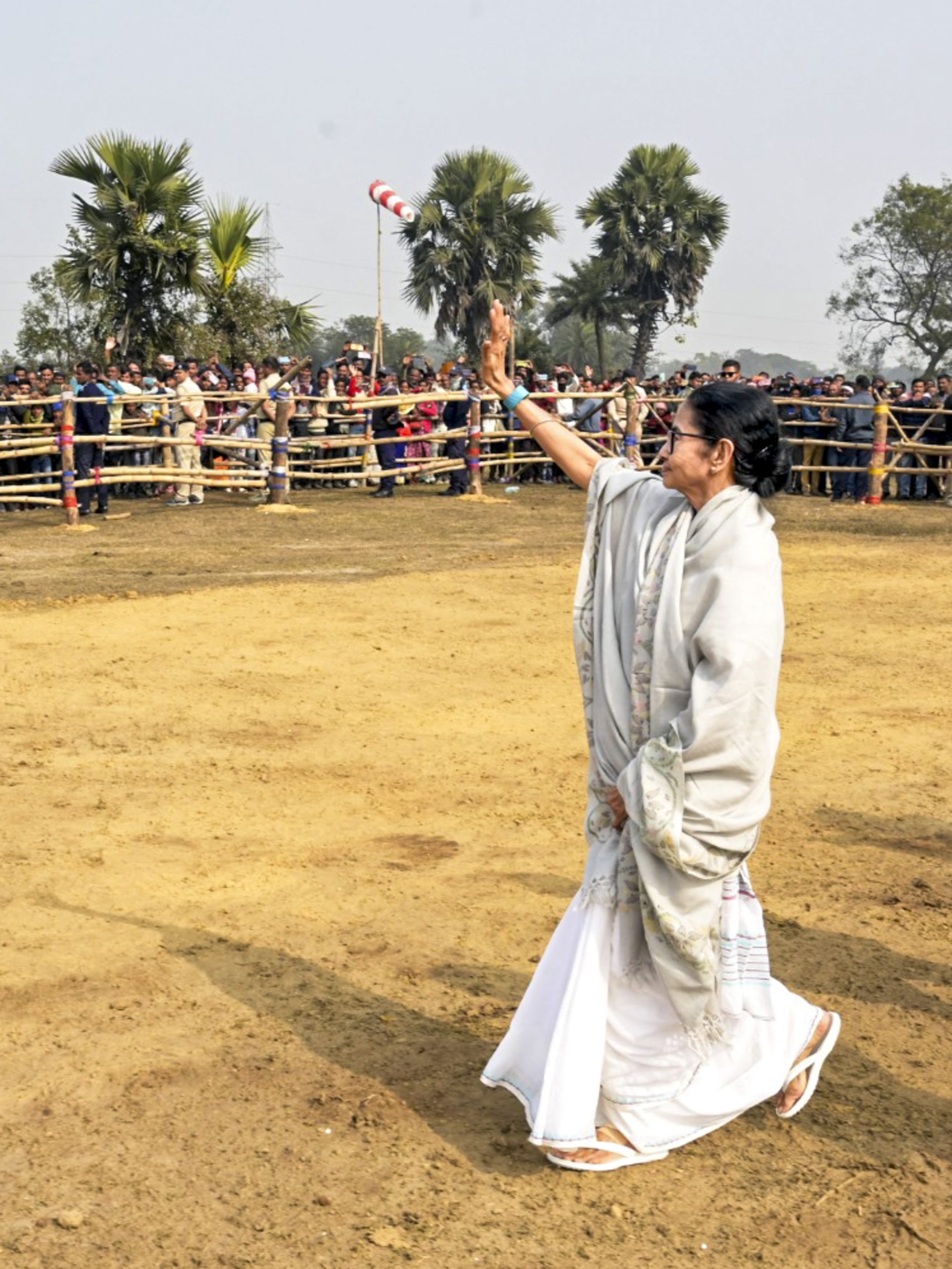 **EDS: THIRD PARTY IMAGE** In this image received on Dec. 30, 2025, West Bengal Chief Minister greets supporters during a public meeting, in Barjora, West Bengal. (CMO via PTI Photo)(PTI12_30_2025_000364B) *** Local Caption ***