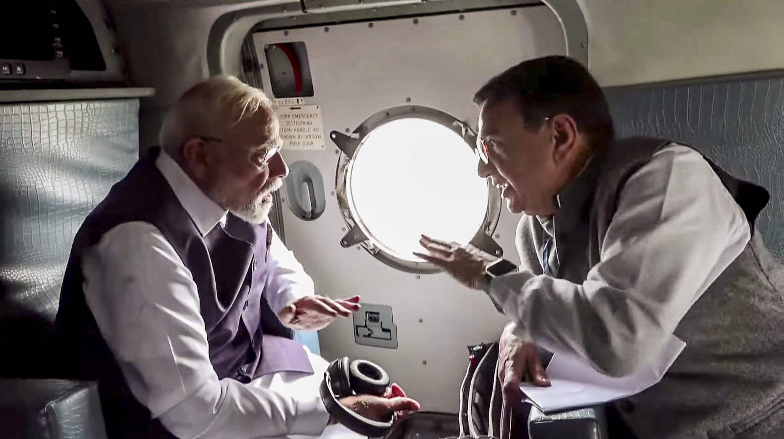 প্রধানমন্ত্রীর কার্যালয় (পিএমও) মোদীর আকাশ জরিপের ভিডিও ফুটেজ প্রকাশ করেছে।