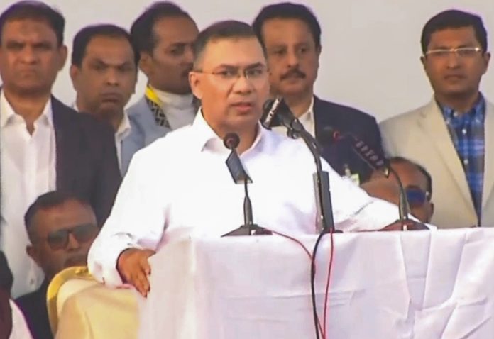 **EDS: SCREENGRAB VIA PTI VIDEOS** Dhaka: Bangladesh Nationalist Party (BNP) acting chairman Tarique Rahman addresses supporters, in Dhaka, Thursday, Dec. 25, 2025. Tarique has returned to Dhaka ending more than 17 years of self-imposed exile in London, marking a major political development ahead of Bangladesh's February 2026 general elections. (PTI Photo)(PTI12_25_2025_000503B)