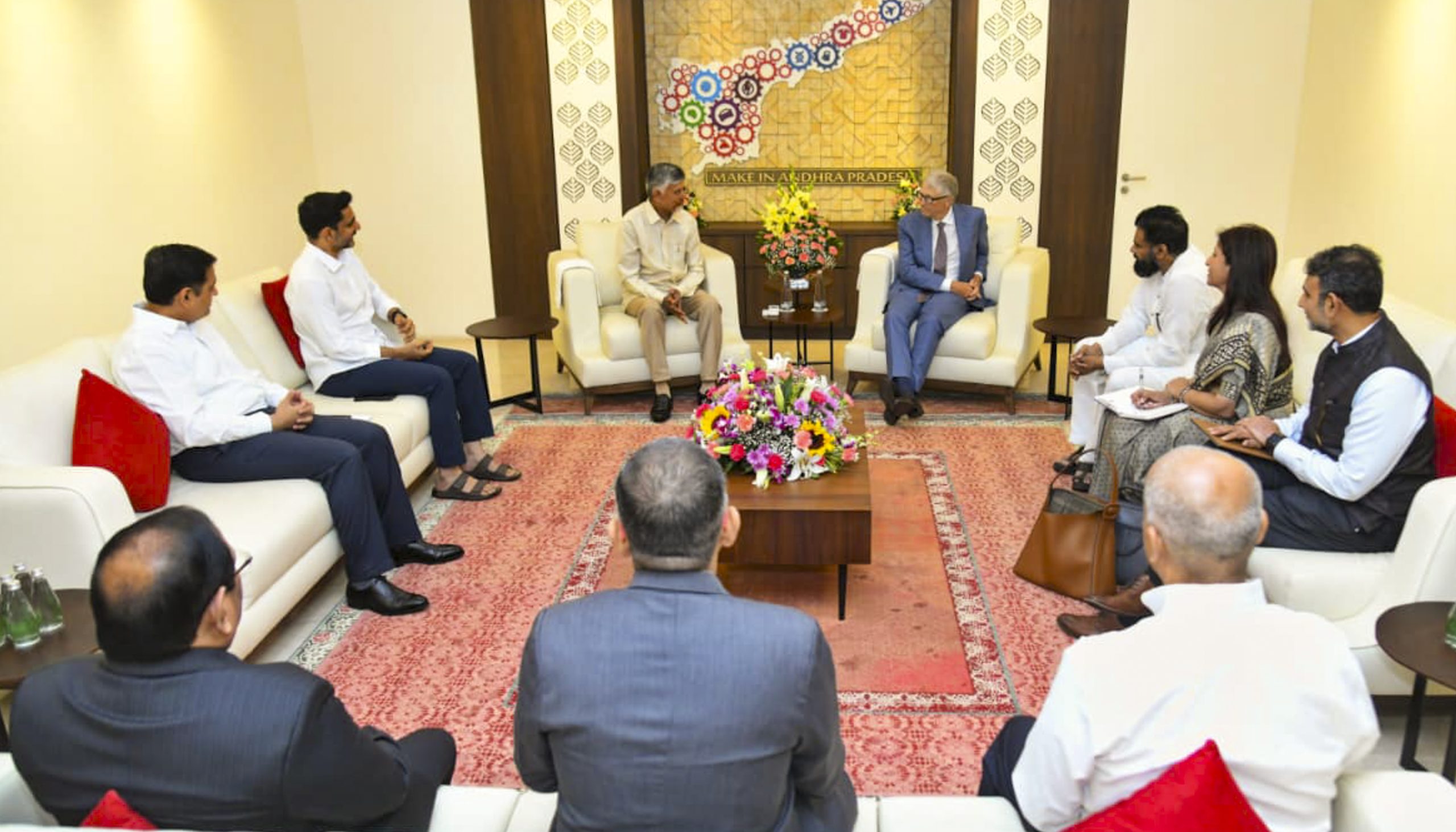 অমরাবতী, ১৬ ফেব্রুয়ারি (পিটিআই) অন্ধ্রপ্রদেশের মুখ্যমন্ত্রী এন চন্দ্রবাবু নাইডু সোমবার মাইক্রোসফটের প্রতিষ্ঠাতা বিল গেটসকে রাজ্য সরকারের বিভিন্ন উদ্যোগ সম্পর্কে অবহিত করেন। এর মধ্যে ছিল হোয়াটসঅ্যাপ গভর্নেন্স, সঞ্জীবনী প্রকল্প, গ্রিনফিল্ড রাজধানী আমরাবতী, ডেটা লেক ইত্যাদি।