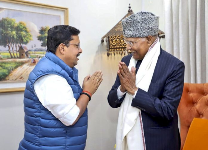 **EDS: THIRD PARTY IMAGE** In this image posted on Dec. 17, 2025, former president Ram Nath Kovind during a meeting with BJP National Working President Nitin Nabin, in New Delhi. (@NitinNabin/X via PTI Photo)(PTI12_17_2025_000325B)