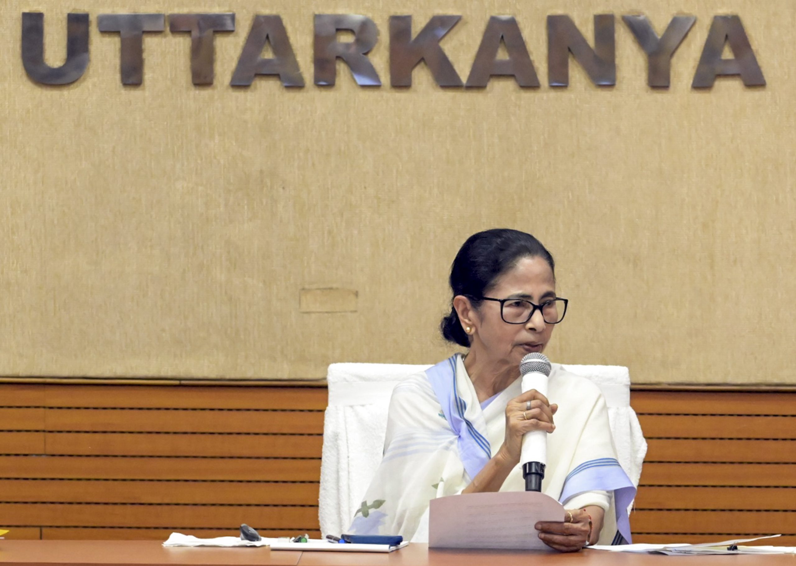 **EDS: THIRD PARTY IMAGE** In this image received on Nov. 10, 2025, West Bengal Chief Minister Mamata Banerjee addresses a press conference during her visit to North Bengal to review ongoing relief, restoration, and rehabilitation efforts across flood-affected districts, in Siliguri, West Bengal. (Handout via PTI Photo)(PTI11_10_2025_000201B)